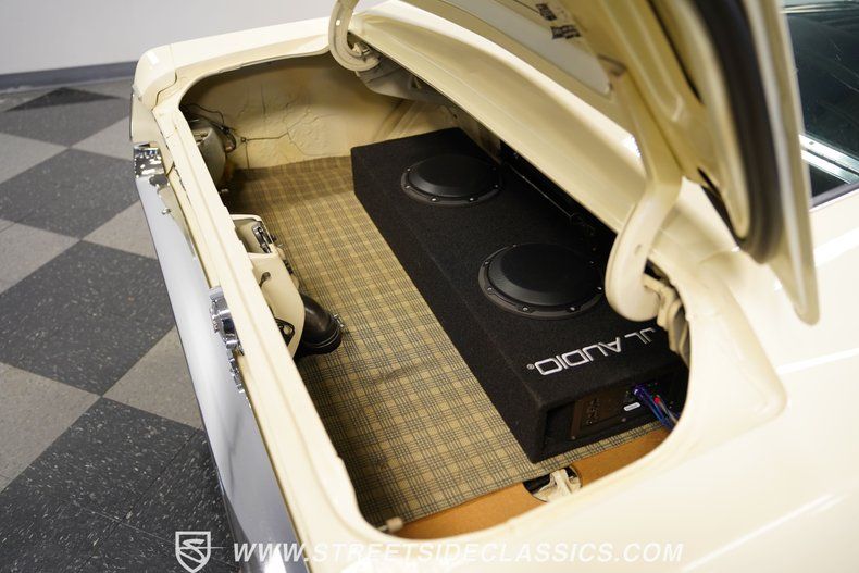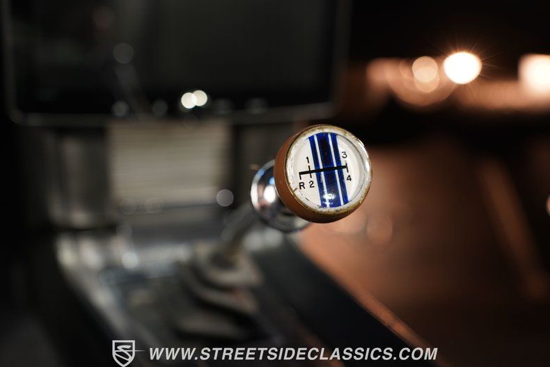 Inside, black vinyl bucket seats welcome you to a cockpit built for performance. The deluxe interior is a blend of restored and well-preserved original components. A floor shifter stands ready for action, connecting you directly to the 4-speed manual transmission. The fold-down rear seat adds versatility to this muscle car. The clean, uncluttered dashboard houses the original gauges, as well as a cool Stewart-Warner tachometer, and Planet Audio touchscreen radio offering a clear view of vital information as you unleash this pony car's power. Other interior amenities include modern air conditioning, upgraded sound system, factory overhead console, and an upgraded tilt steering column with wood-rimmed steering wheel.