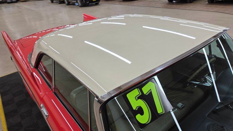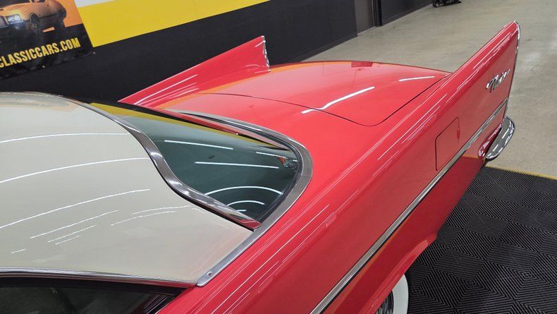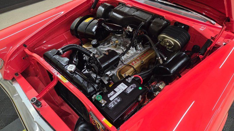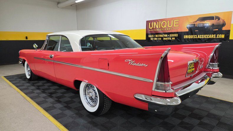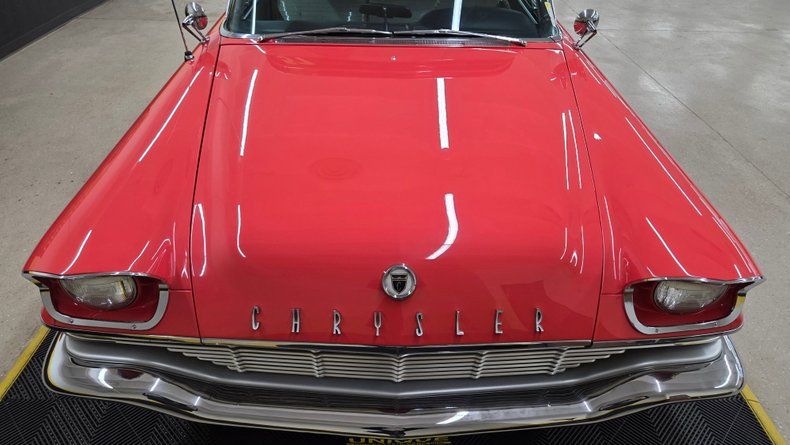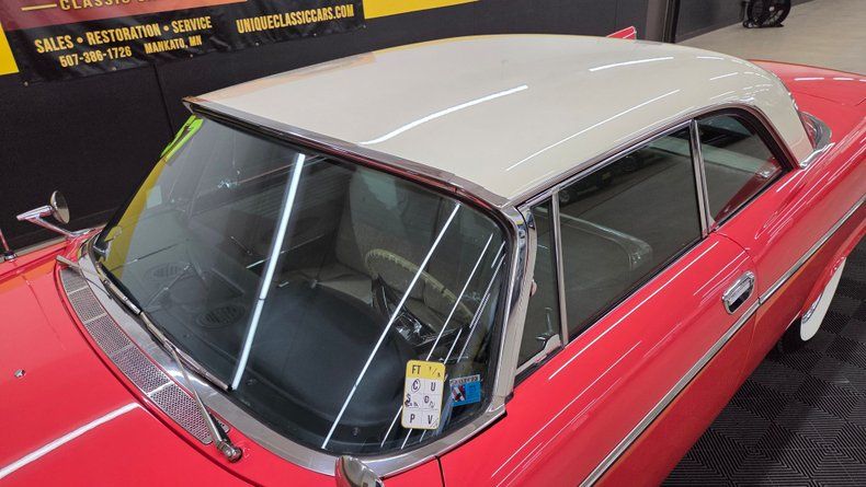1957 Chrysler Windsor two-door hardtop. 354 cubic inch V8 engine, known as the "semi-hemi," paired with a push-button automatic transmission. Beautiful condition, with straight panels, vibrant two-tone paint in a particular shade of red, an ivory top, and gleaming chrome detailing. Fit and finish is great. The interior retains plastic seat covers and its classic dashboard, preserving 1950s authenticity. Recent maintenance includes a rebuilt transmission, new head gasket, fresh oil change, lower ball joints and radius arms, and brake servicing, ensuring it runs smoothly and reliably. The power steering and power brakes enhance drivability, while the wide whitewall radial tires and real wire-spoked wheels add to its vintage charm. The push-button start and gear selection is easy to use and functions smoothly. The radio, wipers, blower motor and gauges are functioining. A hard to find well-preserved example of 1950s American automotive design from Chrysler, perfect for collectors, car shows, and cruising enthusiasts. To start, turn the key and then fully depress the neutral/start button on the dash to the left of the wheel. On the road it rides as good as it looks, easy and comfortable to drive with nice performance and responsive brakes.