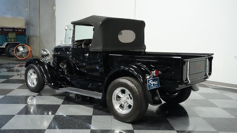 Owned by the same family for over five decades, this 1929 Ford Model A Pickup in black displays the kind of craftsmanship that comes from decades of careful attention. Steel body construction maintains the authentic Ford heritage while the removable soft top adds versatility to the classic design. Radir Custom 15" wheels complement the period-correct proportions, wrapped in 26X10.00R15LT front and 28X10.00x15LT rear tires. The short bed configuration keeps the lines clean and functional, while chrome and brightwork add the finishing touches to this well-preserved pickup.