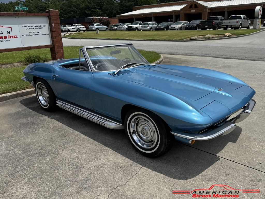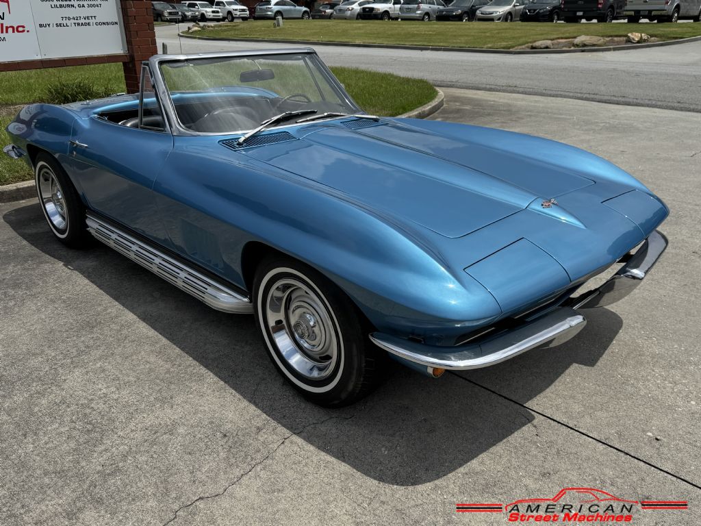 American Street Machines is proud to offer this 67 L79 high horse power small block Corvette for sale. Correct code 976 Marina Blue paint with std Black interior and a white soft top. Matching numbers L79 327/350hp V8 with a M21 close ratio 4 speed transmission. Great sound on this high horsepower small block with the side exhaust and L79. Rally wheels with white wall tires. If you are in the market for a 67 L79 Corvette convertible to drive and show then this is a great candidate.