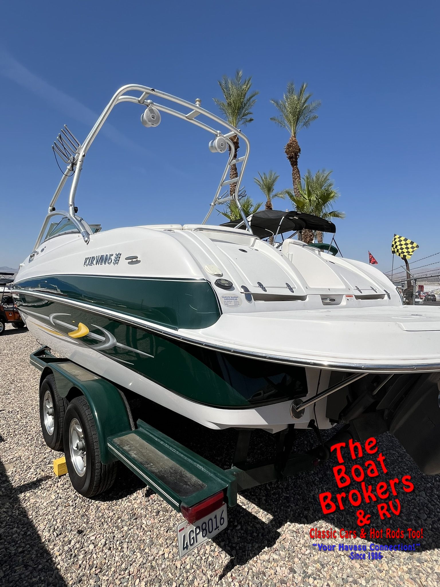 Hit the water in style with this 2005 Four Winns 234 Funship Deck Boat! Powered by a strong 5.7L Volvo Penta GXi engine with a Duo Prop outdrive, this boat delivers impressive performance and handling. It features a clean interior with carpeted flooring, a bimini top for shade, a ski tower with wakeboard holders, and a large swim deck perfect for relaxing or water sports. You'll also find a convenient storage room with a porta-potty for extended days on the lake. Whether you're cruising, towing, or just soaking up the sun, this Funship sounds great and is ready for your next adventure!