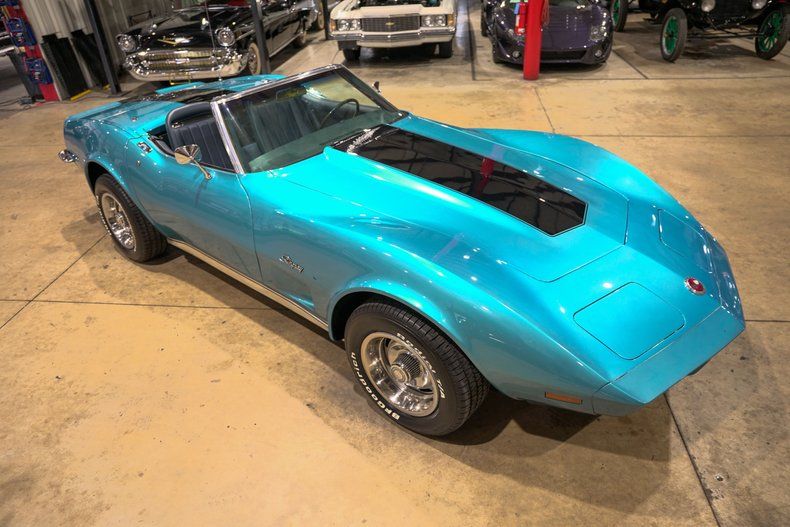GR Auto Gallery is thrilled to present this beautifully preserved piece of Corvette heritage. This 1973 Chevrolet Corvette Convertible offers an authentic driving experience with just 9,394 miles on the odometer and long-term ownership dating back to 1978. Finished in striking Medium Blue with a black racing stripe and paired with a blue-grey leather interior, this drop-top delivers classic American style with unmistakable flair. Powered by a 350 V8 and mated to a 4-speed manual transmission, this Corvette retains its original rear-wheel-drive layout, delivering a raw and engaging feel that defines the early '70s sports car era. Its 15-inch factory wheels, wrapped in BF Goodrich radial tires, and chrome rear bumper, only offered during the transitional 1973 model year, add to its collectible appeal.