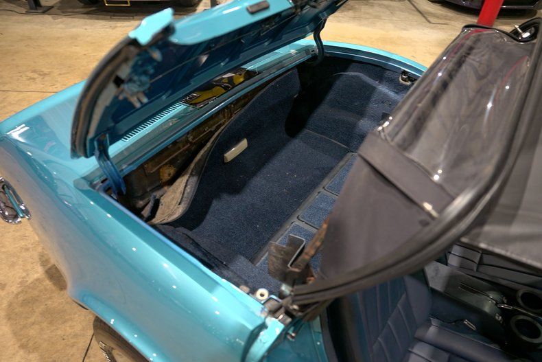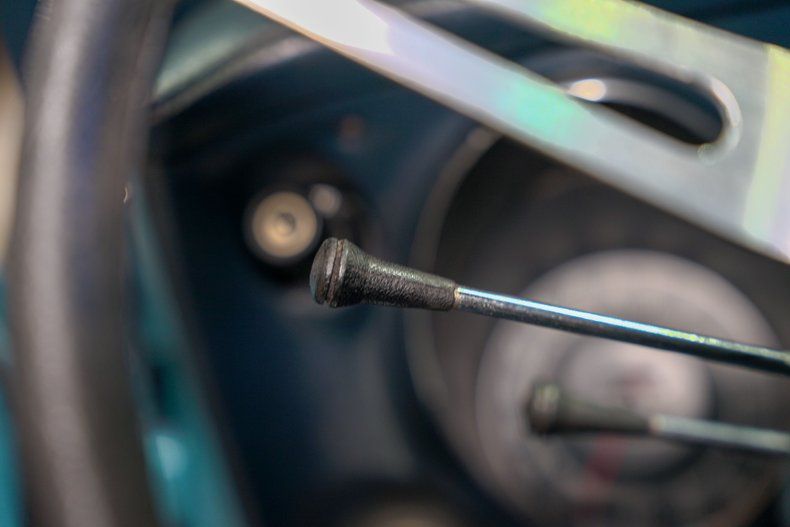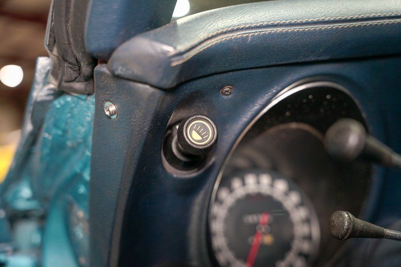The cabin is a time capsule of original details, from the all-original gauges to the dash-mounted analog clock, fuel, battery, and water readouts. Features like A/C and heat, power windows, AM/FM radio, and flip-up headlights blend comfort and function, while manual locks and a black convertible top keep things refreshingly simple and period correct.