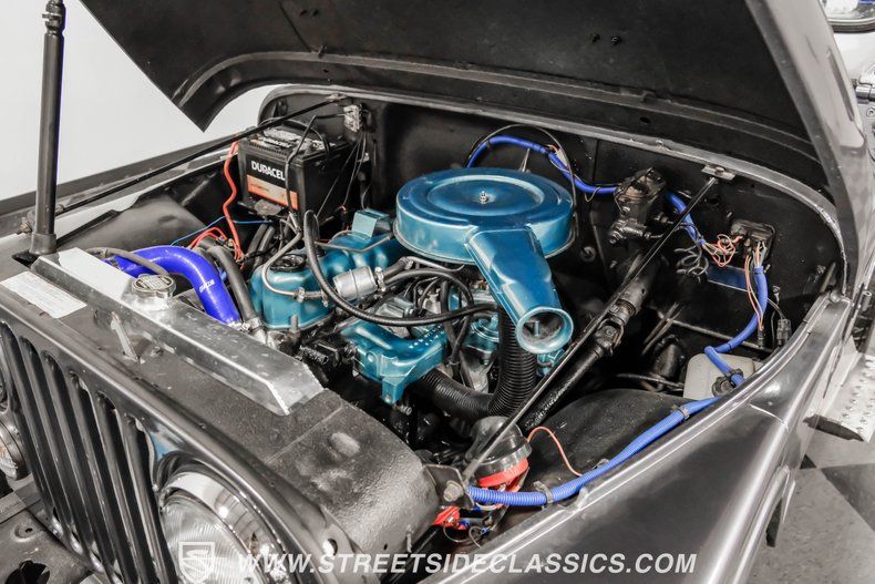 This Jeep derives its power from the rebuilt 4.2-litre engine, paired with a 3-speed manual transmission, ready to tackle untamed paths. With a solid axle suspension with leaf springs and shocks and a Dana 30 front axle and AMC 20 rear axle, this CJ is ready for any adventure seeker.