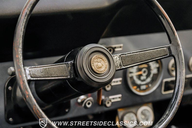 Step inside, and you're greeted by bucket seats with new Dickies seat covers, providing comfort and durability as timeless as those iconic Dickies work clothes. Features include the original Jeep steering wheel, a new dash pad, two 12-volt plug-ins in the dash and a high-lift jack attached to the roll bar.