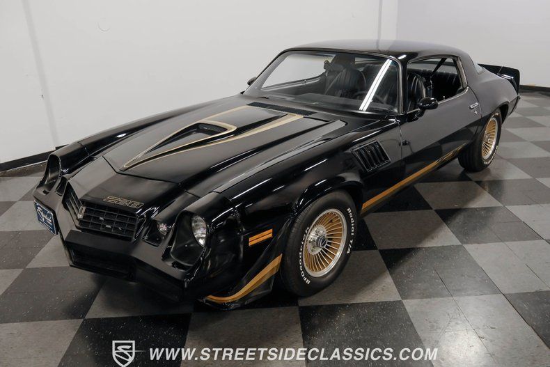 This exceptional, low mileage 1979 Chevrolet Camaro Z/28 with black exterior with gold Z/28 graphics creates a bold visual impact, amplified by the factory aluminum 15-inch wheels. With only 44,977 original miles, this Camaro is stunning. The signature Z/28 hood scoop, front and rear spoilers and distinctive badging give this Camaro its aggressive profile. The 225/70R15 BF Goodrich Radial T/A tires plant this Z28 firmly on the pavement.