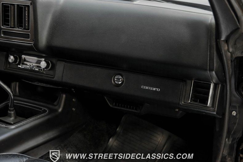 Numbers-matching 350 V8 Engine Borg Warner T10 4-Speed Manual Transmission 44,977 Believed Actual Miles Factory Exhaust Manifolds Dual Exhaust Power Front Disc Brakes Independent Front Suspension with Coil Springs Solid Axle Rear with Leaf Springs Air Conditioning Power Windows Black Paint with Gold Z/28 Graphics 15-inch Factory Aluminum Wheels 225/70R15 Front, 225/75R15 Rear BF Goodrich Radial T/A Tires Z/28 Hood Scoop Front and Rear Spoilers Black Interior with Bucket Seats Full Center Console Complete Gauge Cluster Factory AM/FM Radio Power Steering Tilt Steering Column