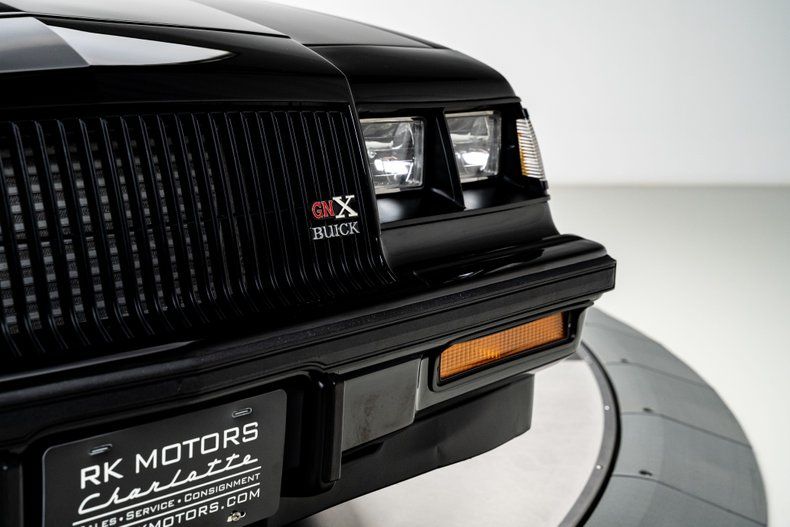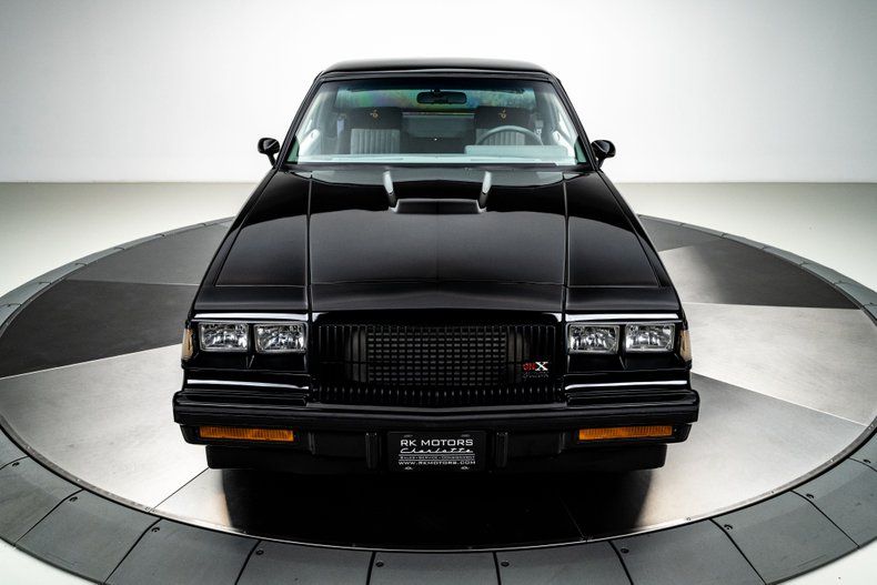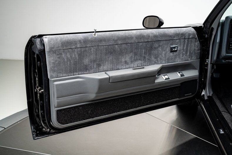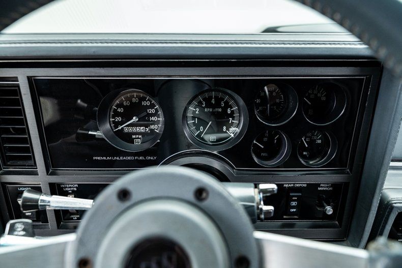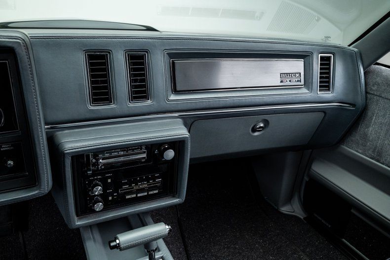 Inside, the transformation is just as impressive. The cabin is fully Buick-themed, centered around an authentic GNX dashboard equipped with OEM-style audio and climate controls, a full suite of GNX-style Stewart-Warner gauges including a 160-mph speedometer and boost gauge, and a numbered GNX #487 dash plaque. The correct Grand National door panels house integrated power window switches and "Concert Sound II" branded speakers, while a suede-style headliner adds a refined touch up top. The overall presentation is clean, cohesive, and era-authentic in all the right ways.