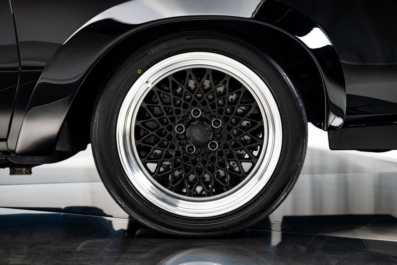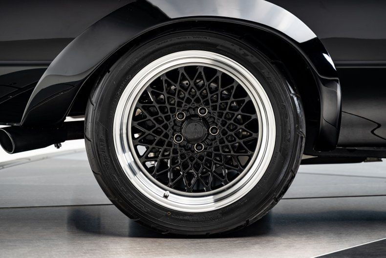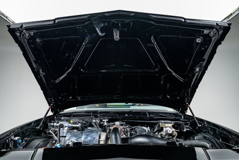 Finished in gloss black...just like every '87 GNX ever built...the exterior wears a full complement of GNX-style fender flares, functional fender louvers, and 18-inch mesh wheels inspired by the original GNX rollers. A body-matched hard tonneau cover, upholstered bed, and fully functional tailgate complete the custom rear treatment. Wide Nitto NT05R drag radials in back and Nitto Invos up front hint at the kind of power this car was built to manage.