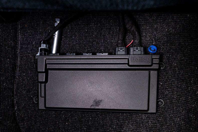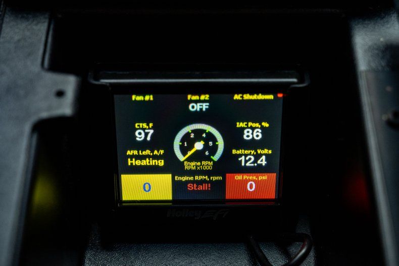 Under the hood is a Buick Motorsports Stage II 4.1L turbocharged V6, breathing through a Precision Turbo setup and backed by supporting upgrades like an upgraded fuel system, oil and transmission coolers, a Precision blow-off valve, and RJC Racing billet pulleys that reduce reciprocating weight. Exhaust exits through a custom stainless steel system, while shifting duties are handled by a THM200-R4 4-speed automatic overdrive transmission, built to withstand serious horsepower. An aluminum driveshaft connects to a 10-bolt Grand National rear end with 3.73 gears, Positraction, and a LPW diff cover for added strength and cooling. A Holley EFI controller mounted in the center console keeps the engine's fuel and spark precisely managed for optimal performance. On a conservative tune, it's put down 470 horsepower and 430 lb-ft of torque to the rear wheels, with the capability for much more.