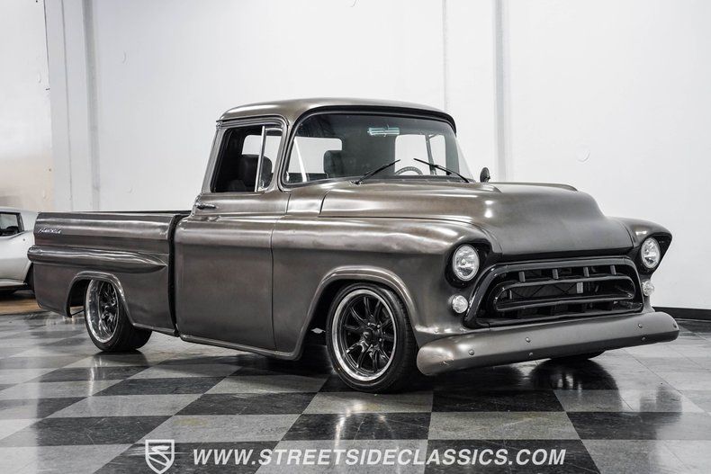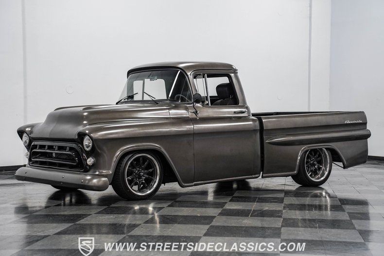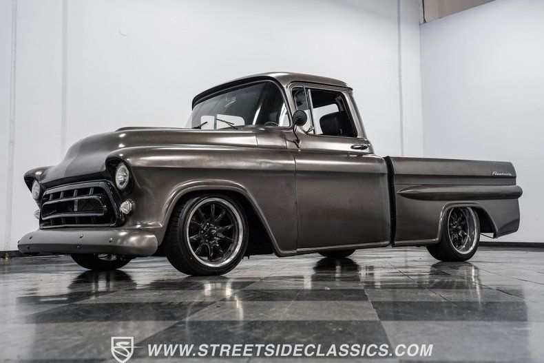 If you've been searching for a custom classic truck that's both fun to drive and a standout wherever it goes, this 1957 Chevrolet 3100 Fleetside is the answer. With bold bodylines, fresh wheels, and modern upgrades, it's a head-turner ready to cruise. Call today!
