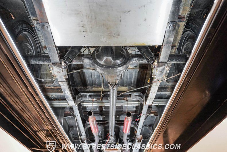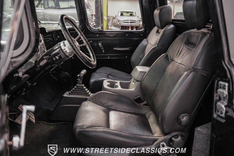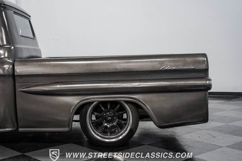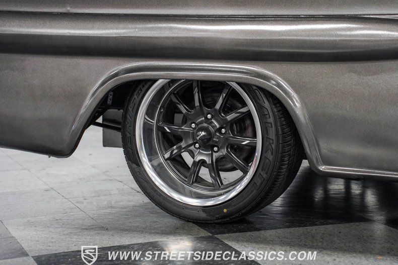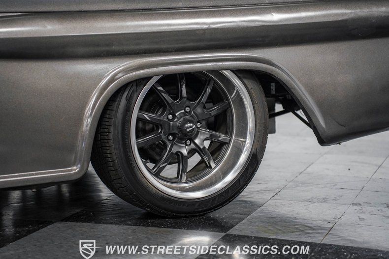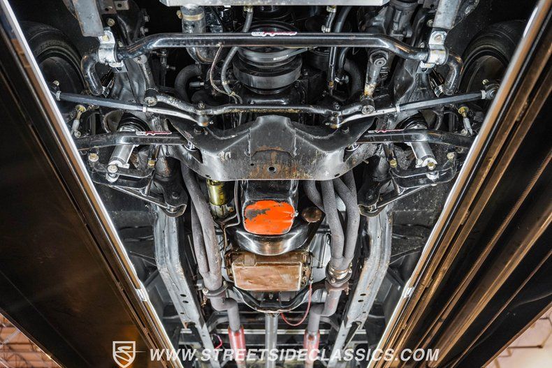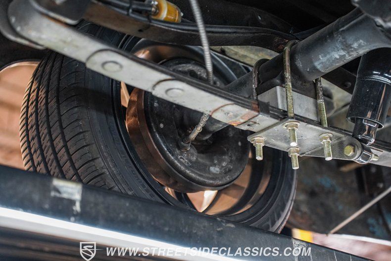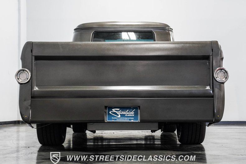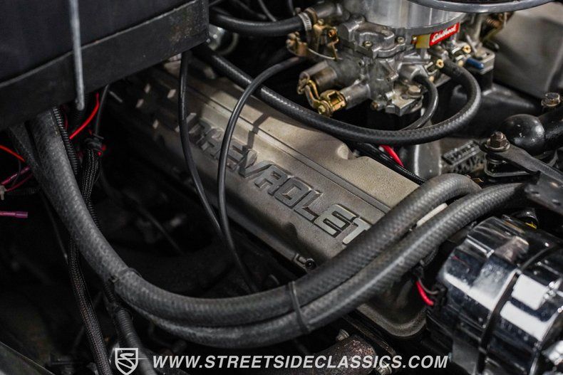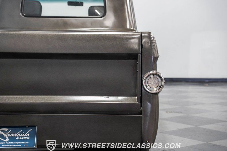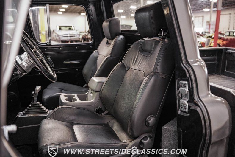 Under the hood, power comes from a 350-cubic-inch V8 topped with a four-barrel Edelbrock carburetor. Long-tube headers feed into dual exhaust with glasspack mufflers, delivering a snappy sound worthy of a classic cruiser. A TH350 three-speed automatic transmission handles shifting duties. The front suspension has been upgraded with a Camaro front clip, paired with a UMI Performance drop kit, which features tubular A-arms, adjustable coilovers, and a sway bar. Out back, the truck runs leaf springs and shocks with a solid rear axle. Stopping power comes from power front disc brakes and power rear drums. Wrapping up the package are black 17-inch Ridler wheels fitted with Falken 225/45R17 front tires and 265/40R17 rear tires.