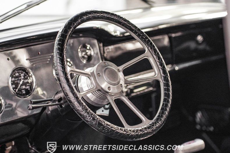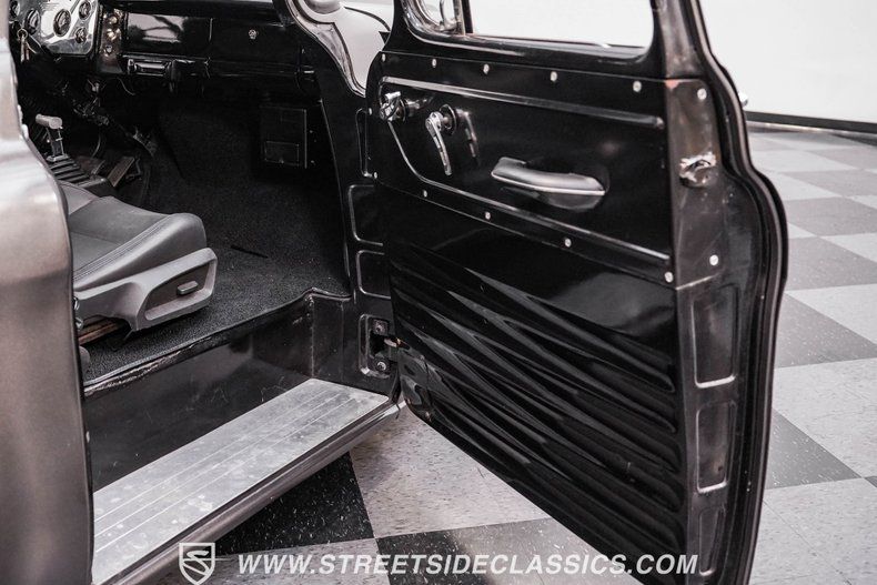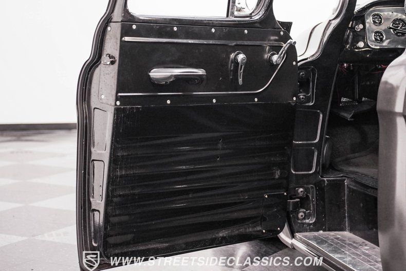 Inside, you'll forget you're in an older Chevrolet pickup. The cabin features two black leather power bucket seats and a center console with storage and cupholders. A B&M floor shifter provides easy access for gear changes, while a tilt steering column with a custom wheel ties in seamlessly with the dashboard. The billet gauge cluster is fitted with AutoMeter readouts, including RPM, MPH, oil, voltage, water temperature, and fuel. For entertainment, a Kenwood AM/FM/CD stereo with Bluetooth gives the cabin a nice update vibe.