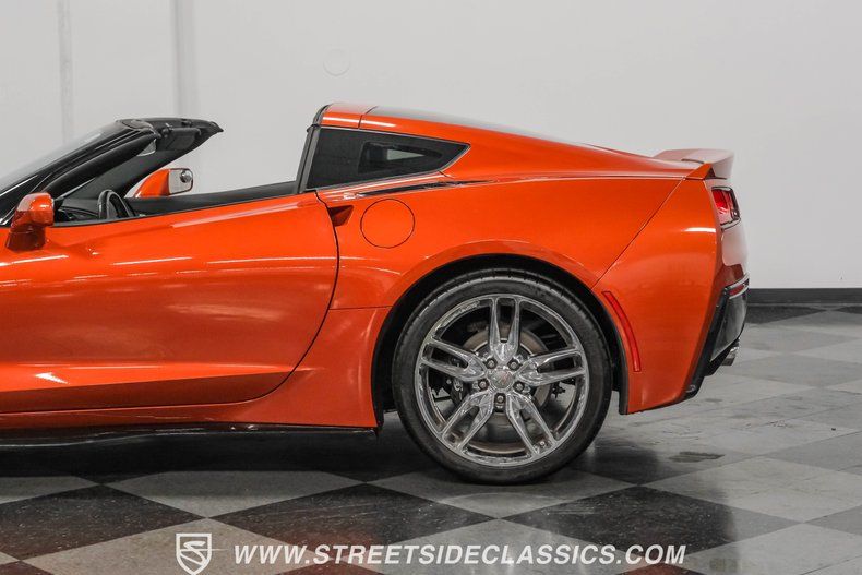Here we have a stunning Daytona Sunrise Orange Metallic 2016 Chevrolet Corvette Z51 Supercharged sports car. This Vette looks fast, drives fast, and comes with documentation to back it up. The exterior is exceptionally clean-stock rims, stock panels, lights, vents, ground effects, and the targa top are all free of any major damage and most minor imperfections. Plus, it comes with a set of Bogart beadlock wheels with Mickey Thompson ET Street R tires for the rear. So, whether it's street cruising, drag racing, or road racing that interests you, this Corvette is ready to do it all.