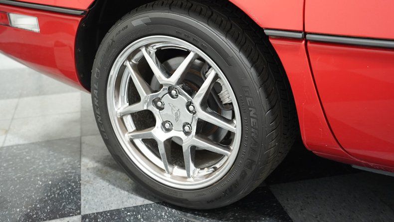 The full hood tilts forward to make sure everyone can get a good view of the fuel-injected powerhouse. This is the 350 cubic-inch TPI V8, and it certainly looks the part of well-kept stock. While the small block is one of those perfect motors for tuning, this example remains as stock as the rest of the car. With a four-speed automatic transmission, four-wheel disc brakes, power steering, and a fully independent suspension, this Corvette has all the right features for touring in comfort and style. Some important service receipts come with the car.