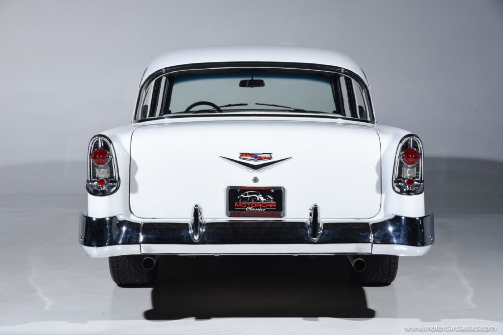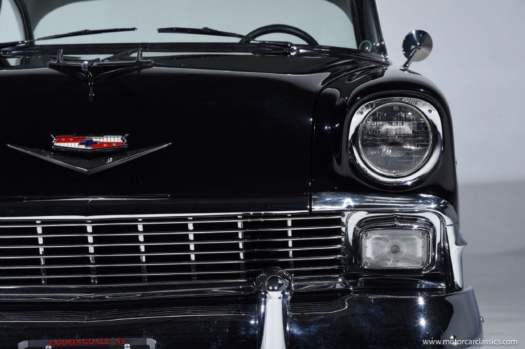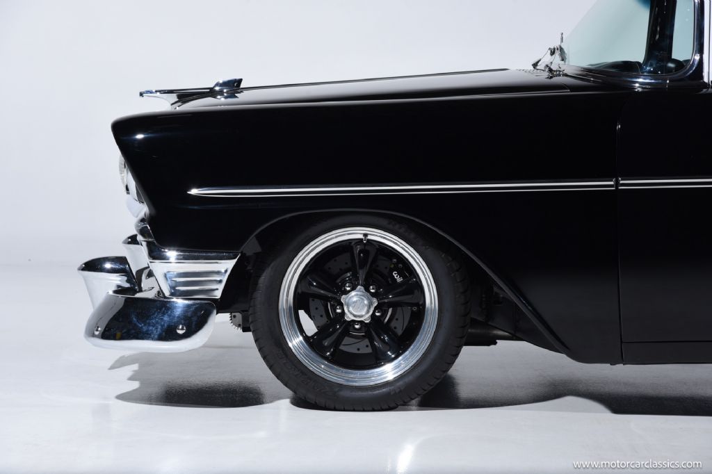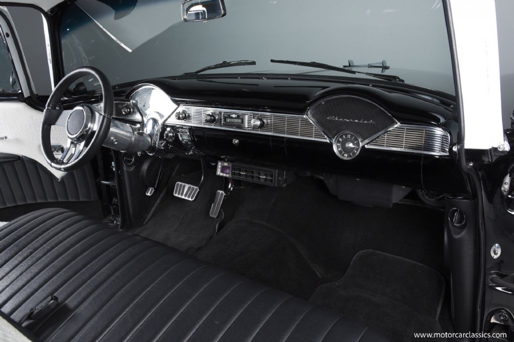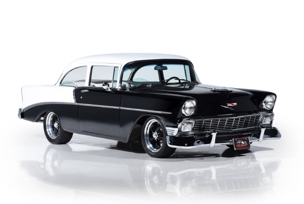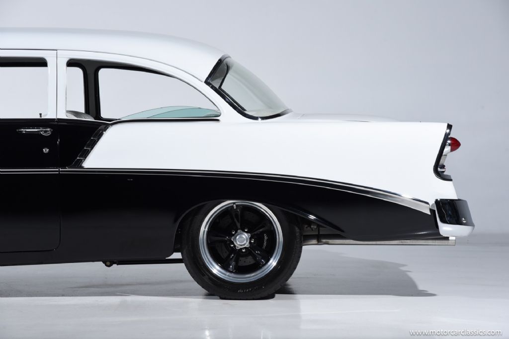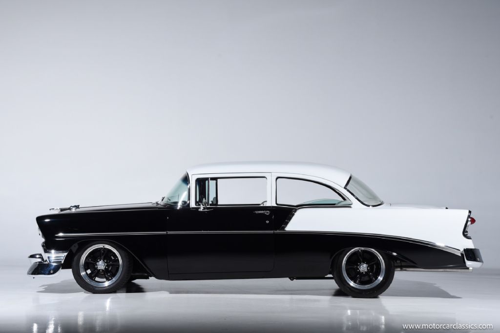 1956 Chevrolet 210 Custom for sale! Motorcar Classics is proud to present this custom 1956 Chevrolet 210 that has been treated to a full frame-off, rotisserie restoration, executed with meticulous attention to detail throughout. Its sleek, laser-straight body is finished in a stunning mirror-like Black and White paint scheme, complemented by matching Black and White interior trim. The exterior is enhanced with 17-inch American Racing aluminum wheels, chrome bumpers, and polished trim all around, giving the car a timeless yet commanding presence.