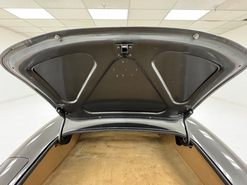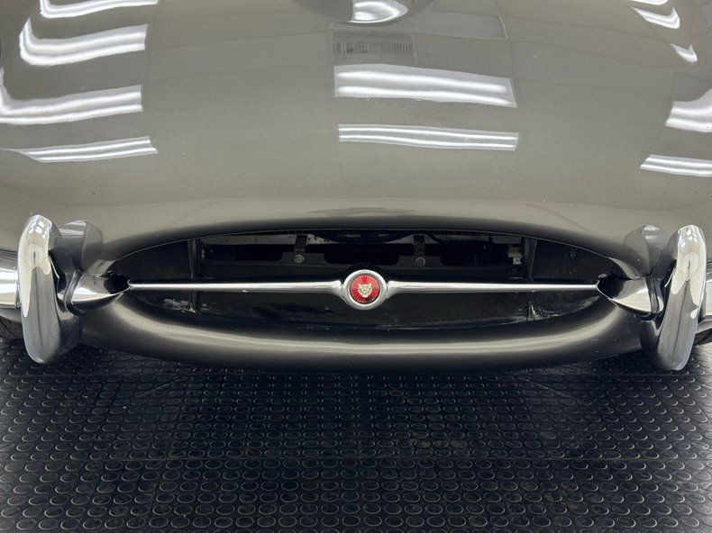 Exterior A version in Warwick Gray, the sleek, long nose and pointed tail of this classic is iconic and timeless. The entire bonnet pivots forward and the result is a sharp and distinctive line that borders the cowl panel, bordered on the other side by the door's edge. Hood vents flank the graceful bulge on the hood that points to the oval grille opening, synonymous with Jaguar, and headlights inset in black lined, chrome trimmed cylinders. Shapes are gently mirrored in the back as the tubular chrome bumper rounds around the license plate box while exotic tail lights hug the corners, reflected in the robust chrome bumper below. Of course, those quad exhaust tips put an exclamation point on the design and a luggage rack on the boot suggests picnics in the Cotswolds rather than laps around Goodwood. 15-inch wire wheels are a must, of course, and the black canvas top is in good shape with one patch repair noted. Imperfections include some chipped paint on the exterior edge of the door sill, some splotches in the paint, some crackling by a wheel, and some rust spots on the spoke nipples and rims of the wheels.