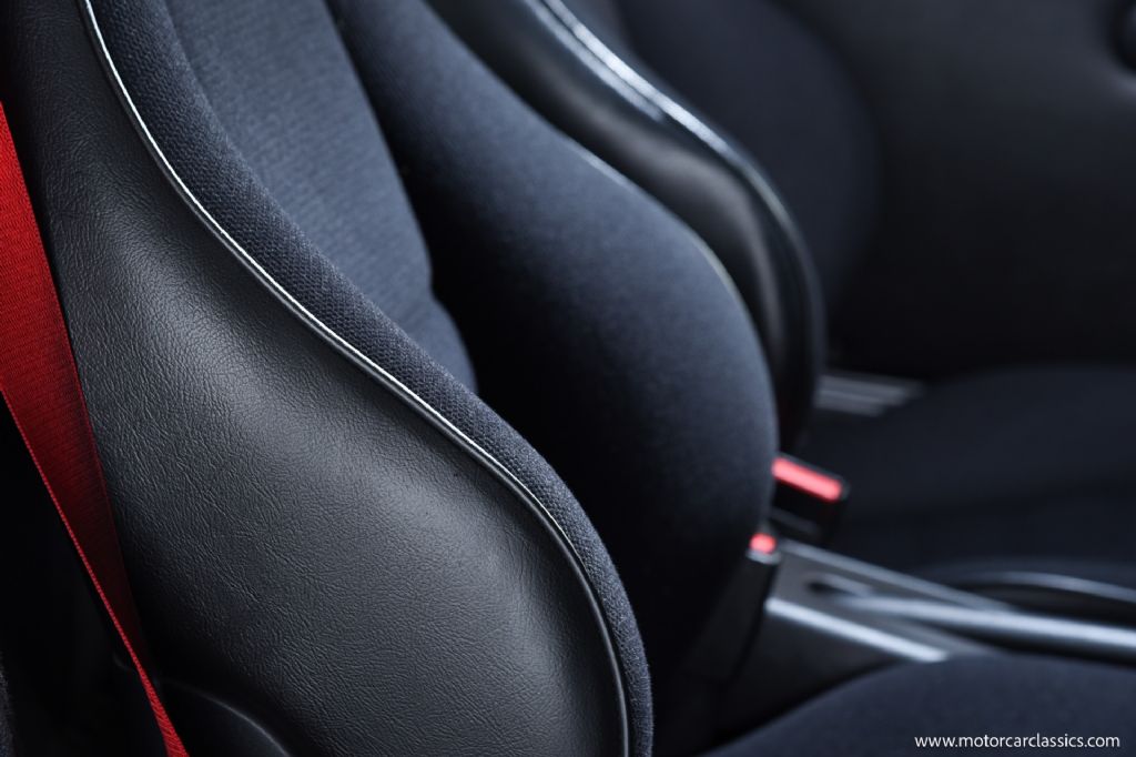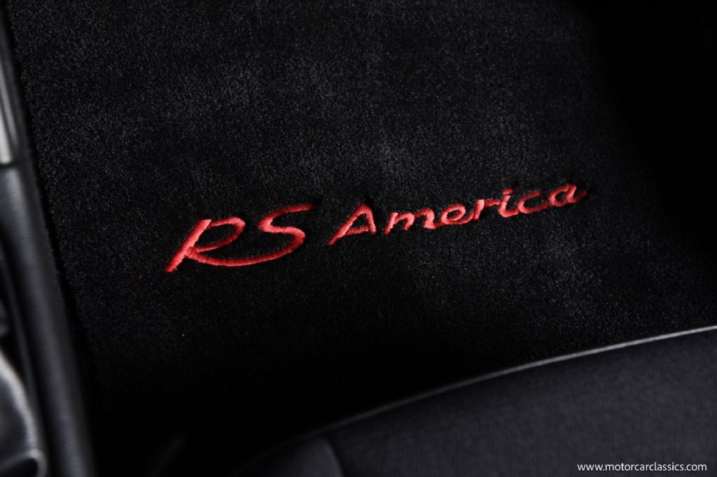 Preserved with its original factory black paint beneath a full-body paint protection film, the car shows beautifully, underscoring its originality and careful ownership. The cabin retains true RS America specification features such as lightweight door panels, pull-strap door openers, and fixed rear seats, reinforcing its track-focused heritage.