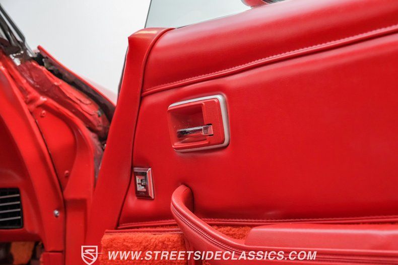 Inside, we find a matching Corvette Medium Red leather interior that appears to be stock, correct, and is most likely original. A tilt and telescoping steering wheel, factory AM/FM stereo, power windows, and locks are complemented by new floor mats, cruise control, and color-matched T-Tops to make this 'Vette as much fun on the inside as it is on the outside.