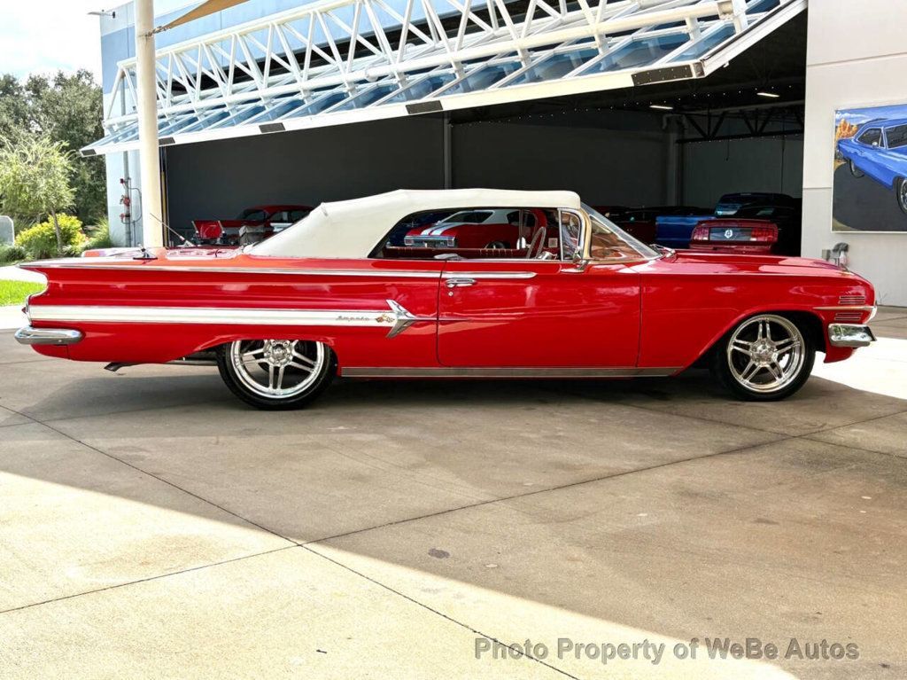 1960 Chevrolet Impala Convertible Why This Car Is Special The 1960 Chevrolet Impala stands as a pinnacle of automotive excellence, representing an era where style and performance seamlessly converge. Renowned for its distinctive styling and robust performance, this Impala offers a breath of luxury with its rare factory-installed air conditioning and power features, making it an enticing prospect for discerning collectors and enthusiasts alike. Features List - 348 V8 Engine - Automatic Transmission - Power Steering - Power Brakes - Power Top - Rare Factory A/C - Fender Skirts - Custom Auto Sound System - Billet Specialties Wheels - Dual Antennas - Wide Whitewall Tires - Continental Kit - Tinted Windshield Mechanical Beneath the hood lies a powerhouse 348 V8 engine, known for its reliability and power output, making this Impala not just a showpiece but a performer on the road. The smoothness of the automatic transmission complements the engines robust character, ensuring a driving experience thats both exhilarating and comfortable. Equipped with power steering and brakes, this vehicle offers ease of handling and superior control, further accentuated by its meticulously maintained mechanical integrity. Interior Step inside to a beautifully preserved cabin that features a striking red and white color scheme. The blend of cloth and leather upholstery not only enhances comfort but also exudes a classic charm that is rare and highly sought after. The inclusion of a Custom Auto Sound system within such a vintage setup ensures that modern amenities meet classic aesthetics without compromising the integrity of its era-specific design. Exterior The exterior of this Impala shines in an eye-catching red that's both vibrant and elegantly presented, a true testament to its well-maintained condition. Chrome detailing, from the bumpers to the trim, highlights the vehicle's sleek and formidable outline. Additions like the fender skirts and Billet Specialties wheels provide a unique flair that sets this Impala apart in any gathering of classic cars. Not to overlook practical enhancements such as the tinted windshield which adds a layer of comfort and style. Conclusion This 1960 Chevrolet Impala is more than just a car; it's a piece of automotive history that continues to turn heads and captivate hearts. With its luxurious features, striking appearance, and outstanding performance, it promises not only a stellar drive but also an investment in style and heritage. Perfect for the collector who appreciates the grace of vintage aesthetics coupled with the conveniences of modern enhancements. We invite you to experience this remarkable classic firsthand and see why it continues to be a beloved icon of automotive culture. For more details or to arrange a viewing, please call us at 941-254-6608. Rediscover classic motoring at its finest with this impeccable 1960 Chevrolet Impala Convertible. Disclaimer Information found on the website is presented as given to us by the owner of the car, whether on consignment or from the owner we bought it from. Some Photos, materials for videos, descriptions and other information are provided by the consignor/seller and is deemed reliable, but Skyway Classics does not warranty or guarantee this information. Skyway Classics is not responsible for information that may incorrect or a publishing error. The decision to purchase should be based solely on the buyers personal inspection of the vehicle or by a professional inspection service prior to offer or purchase being made. WeBe Autos Specializes in Marketing and Advertising Muscle, Classic, Vintage and Specialty Cars. We offer Professional Photography, HD Movies, and Staging that Sells Cars. Let us showcase and sell your specialty car. Please visit our website for more details. Keep in Touch, Michael Runnalls Specialty Car Marketing & Media WeBe Autos Ltd. Long Island, NY 11780 Michael@WeBeAutos.com www.WeBeAutos.com (O)631-339-0399 (C)516-729-2003 Skype: webeautos (F)631-389-2605 - - - Contact Michael Runnalls at 631-339-0399 or Michael@WeBeAutos.com for more information. -