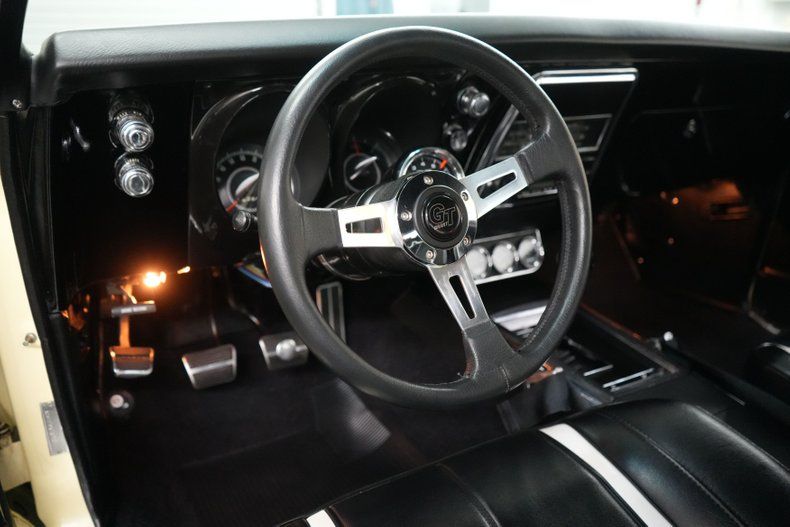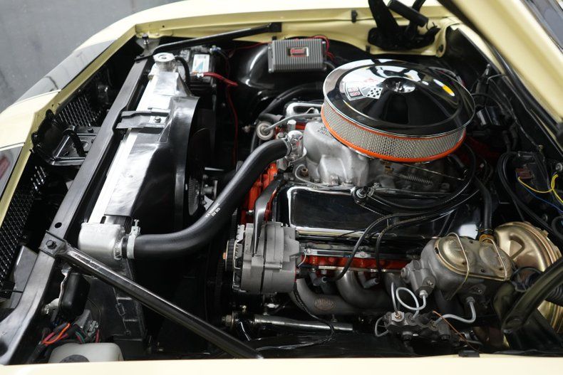 THIS VEHICLE IS LOCATED IN OUR PA. SHOWROOM, FREE SHIPPING AND WARRANTY !!!!! 396cid Big Block Chevrolet Engine. Muncie M20 4-Speed Manual Transmission. Power Steering. Power Brakes. Front Disc Brakes. Rear Disc Brakes. 4 Wheel Disc Brakes. 15 Inch Wheels. Front Tires: 215/65/15. Rear Tires: 245/60/15. Cooper Cobra Radial GT Tires. Torq Thrust Wheels. GM 12 Bolt Rear End. POSI Rear End. 3.73 Gear Ratio. Edelbrock Cast Intake. 4 Barrel Carburetor. Electric Choke. HEI Distributor. Stock Coil. Mechanical Fuel Pump. Stock Ignition. Aluminum Radiator. 5 Blade Cooling Fan. Butternut Yellow Exterior. Black Stripes. Black Vinyl Top. Driver & Passenger Side Mirrors. Chrome Front & Rear Bumpers. Bright Window Trim. Bright Drip Rail Moldings. Factory Gauges. Factory Dash. Summit Tachometer. AutoGage Water Temperature Gauge. AutoGage Oil Pressure Gauge. AutoGage Voltmeter. Black Deluxe Vinyl Interior. Aftermarket Low Back Front Bucket Seats. Rear Bench Seat. Black Carpeting. Black Door Panels. Black Headliner. Center Console. Drilled & Slotted Rotors. Long Tube Headers. Chrome Valve Covers. Tubular Upper & Lower Control Arms. Front Coil Springs. Rear Leaf Springs. 2 1/2" Dual Exhaust. MagnaFlow Mufflers. Black Front Air Dam. Moser Engineering Differential Cover. Rack & Pinion Steering. Rear Traction Bars.