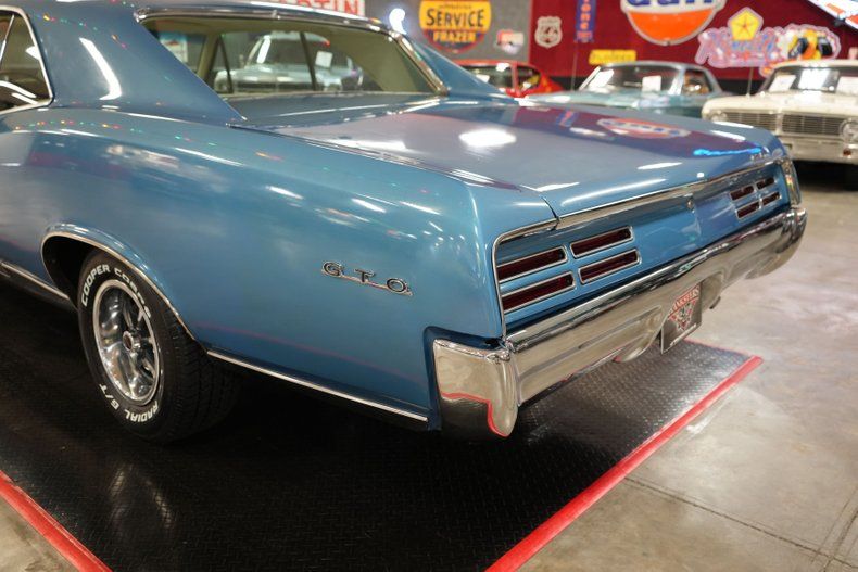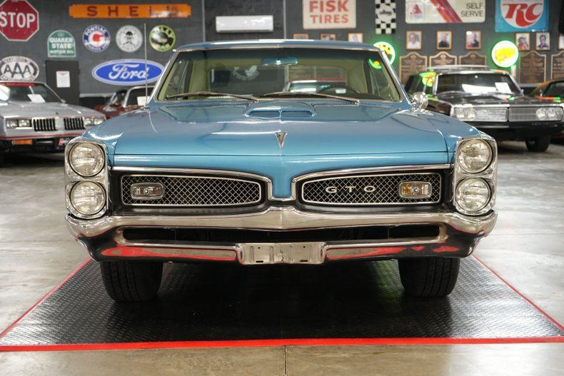This 1967 Pontiac GTO delivers timeless muscle car appeal with a strong factory-style setup. Under the hood sits a Pontiac 400 V8 paired with a GM TH400 automatic transmission and a 10-bolt POSI rear end with 3.55 gears. It's equipped with power steering and power brakes, along with 4-wheel drum brakes for classic stopping power. The blue exterior is complemented by a white vinyl interior and 14" OEM Rally II wheels wrapped in 225/70/R14 Cooper Cobra Radial G/T tires. Additional features include a Holley 650 CFM 4-barrel carb, OEM intake, and ignition system. A true vintage cruiser with iconic Pontiac style. Free shipping & warranty available!!