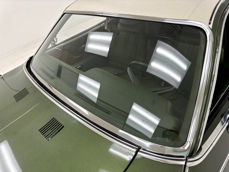 We've said it before, green and other earth tones were popular in this era, and this time capsule is coated with single stage Forest Green Metallic paint and another box was checked for the optional white vinyl top. The headlight bezels are broad and make the lights appear bigger as they flank an egg crate grille over a chrome bumper with, yep, optional bumper guards in fantastic condition. Thanks to the detailed brochure they put out in '73, we see that the side mirrors were referred to as racing mirrors and could be painted or, as in this case chrome. The rear bumper, also with bumper guards, is also the latch panel and three sectioned tail lights are embedded on each side. Standard on the Sebring Plus would have been wheel covers, but our esteemed first buyer smartly picked 15-inch Mopar Rally wheels, or they could have been added later. Either way, they look great with their deep, polished rims. This car has been well preserved and as such, we could not find any glaring exterior flaws.