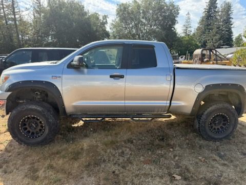 This 2010 Toyota Tundra Double Cab 4WD is a strong and capable pickup, built to handle both work and play. Finished in silver, it features a lifted stance with upgraded off-road wheels and tires, along with fender flares and side steps for added utility and style. Known for its reliability and performance, the Tundra offers plenty of power, towing capability, and interior space, making it an excellent choice for hauling, off-road adventures, or daily driving. A solid, versatile truck thats ready for the road or the trail.