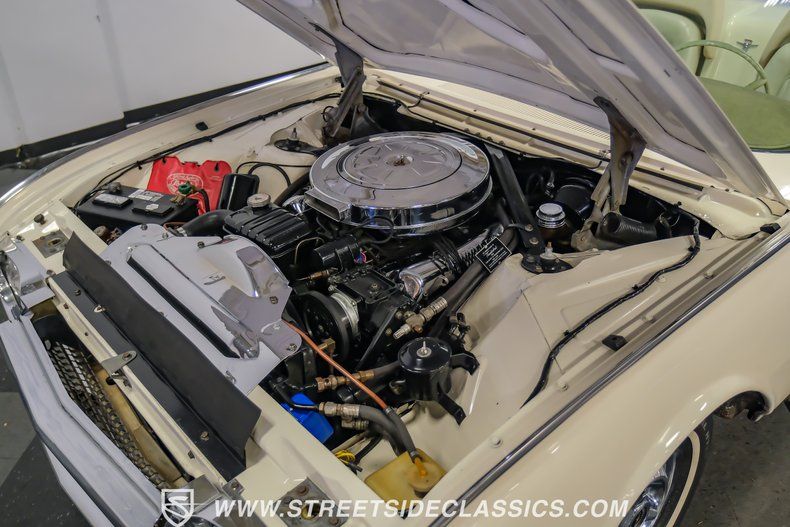 Under the hood sits the period-correct 390 V8 backed by a three-speed automatic transmission. The engine bay is neatly dressed with new valve covers, an upgraded air cleaner and a refreshed radiator support piece. Factory air conditioning remains installed, and the car features power steering plus power brakes and a battery cutoff knob.