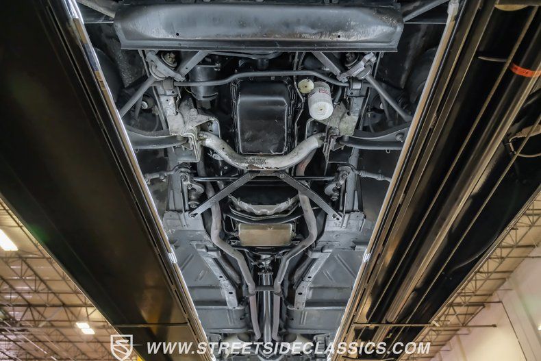 Step inside and you are greeted by white vinyl bucket seats and a tidy rear bench hidden beneath the sport coupe top cover. The interior appears correct and likely original, complete with factory AM/FM radio, tilt-away steering, power windows and power locks. A few age marks are present, but the door panels, seats and stock gauges present well for a survivor-quality car.
