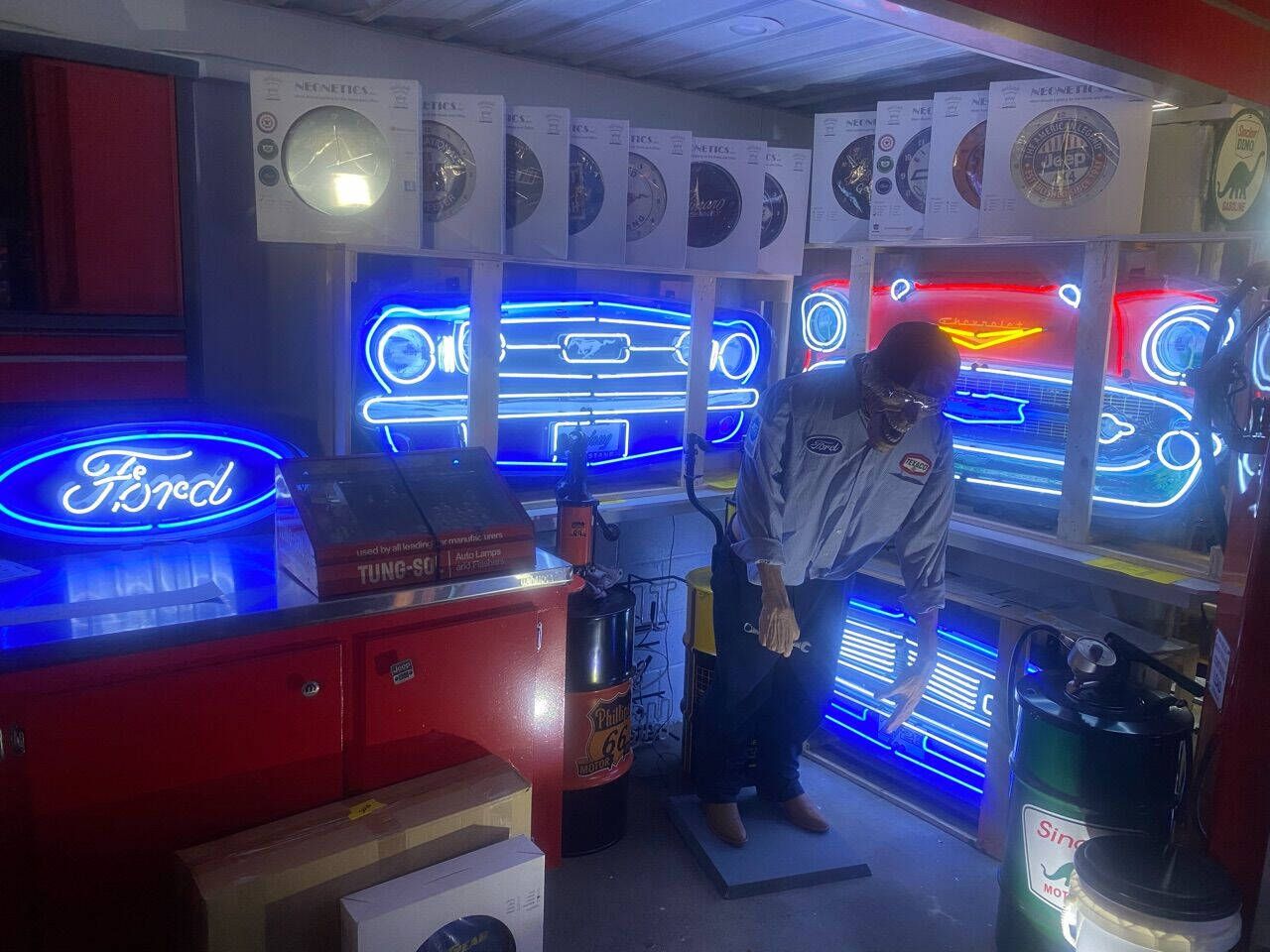 We carry a large selection of neon signs! Automotive, Gas & Oil and many more! If you don't see it, please give us a call. Neon Clocks start at $80.00 Jr. Neons start at $225.00 Standard Neons start at $425.00 36 Steel Can Neons start at $1350.00 Large shaped Steel Can Neons start at $1850.00 Usually 200 plus varieties in stock (Prices subject to change)