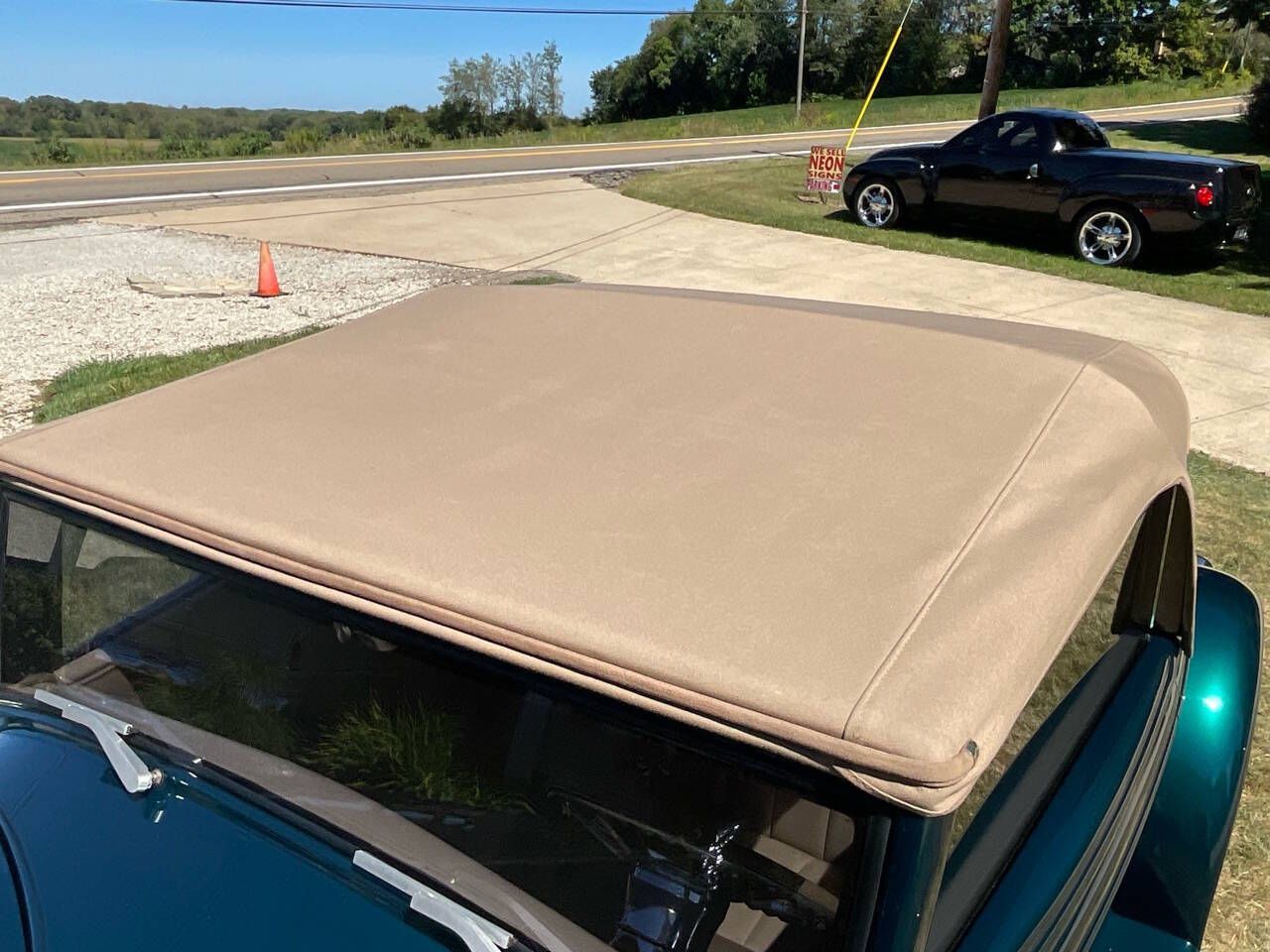 Simply STUNNING!! This car is an absolute must see. This fiberglass car has all the bells & whistles! Beautiful green car with the top down (matching convertible boot) or with the top up. Air conditioning, power windows, upholstered trunk, suicide doors and much, much more!