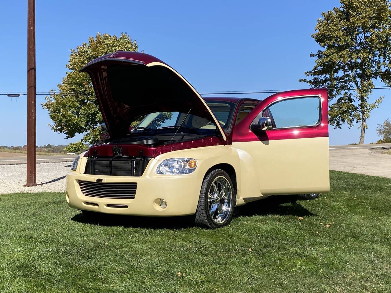 This 2006 Chevy HHR has CUSTOM one-off EVERYTHING!! Spectacular build! House of Kolor paintwork with beautiful custom pinstripes & graphics. Features a custom built stainless, lift up bed floor, side pipes and clear mud flaps and many more unique features. Exceptional build- pictures do not do this justice-it must be seen! *Note: has an Ohio Rebuilt Title