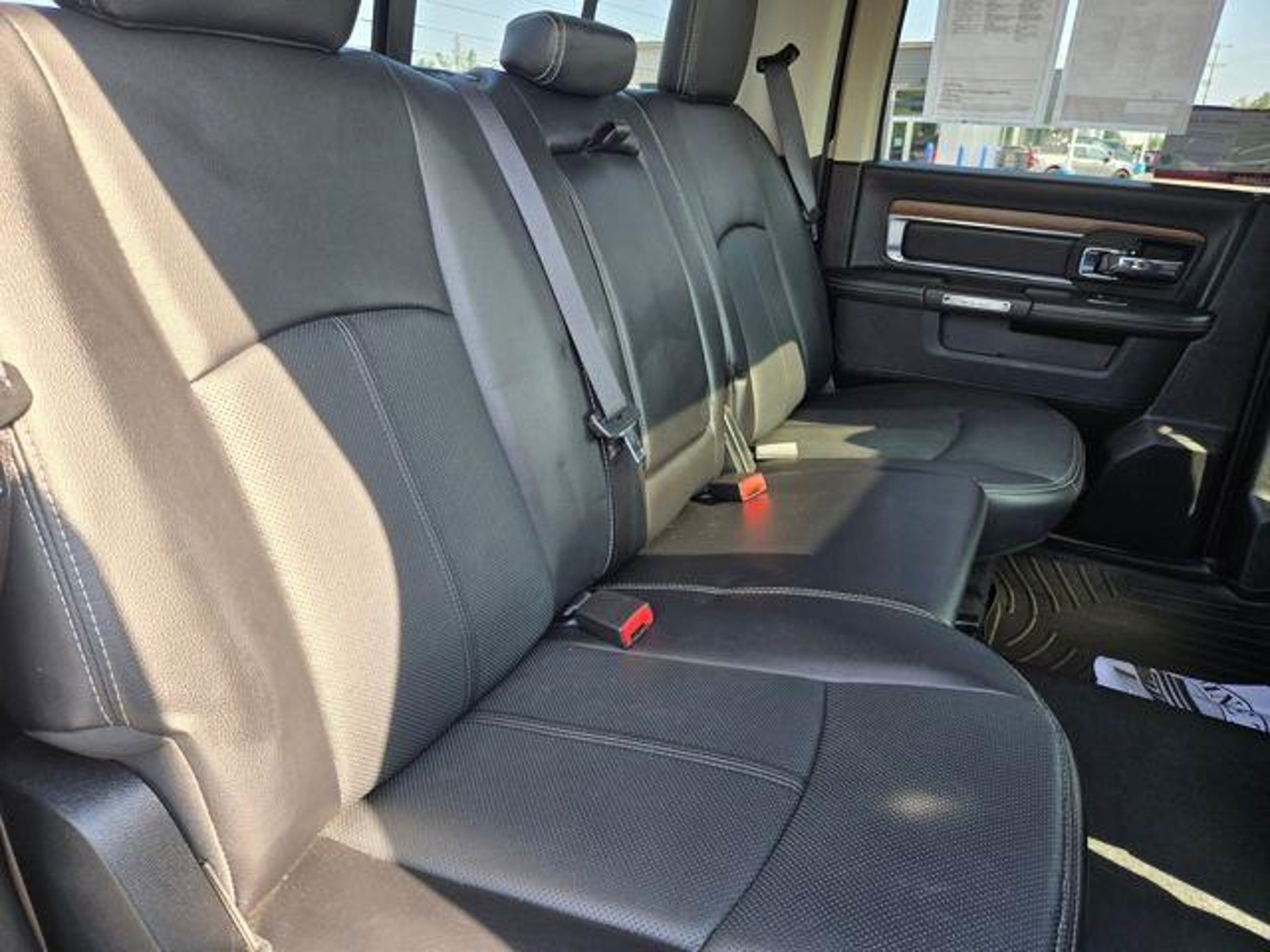 Odometer is 17862 miles below market average! 19/27 City/Highway MPG This 2018 Ram 1500 Laramie in Brilliant Black Crystal Pearlcoat is waiting for you to come in and test drive. ***CLEAN VEHICLE HISTORY REPORT*, Cold Weather Group, Convenience Group, Power Sunroof, Rain Sensitive Windshield Wipers, Remote Start System*** 1-Yr SiriusXM Guardian Trial, 115V Auxiliary Power Outlet, 20 x 9 Chrome Clad Aluminum Wheels, 3.21 Rear Axle Ratio, 3.92 Rear Axle Ratio, 4-Wheel Disc Brakes, 5-Year SiriusXM Traffic Service, 5-Year SiriusXM Travel Link Service, 6 Speakers, 8.4 Touchscreen Display, 9 Alpine Speakers w/Subwoofer (DISC), ABS brakes, Active Grille Shutters, Adjustable pedals, Air Conditioning, Alloy wheels, AM/FM radio: SiriusXM, Anti-Spin Differential Rear Axle, Apple CarPlay, Apple CarPlay/Android Auto, Audio Jack Input for Mobile Devices, Audio memory, Auto High Beam Headlamp Control, Auto-dimming door mirrors, Auto-dimming Rear-View mirror, Automatic temperature control, Brake assist, Bumpers: chrome, Center Hub, Compass, Delay-off headlights, Driver door bin, Driver vanity mirror, Dual front impact airbags, Dual front side impact airbags, Electronic Shift, Electronic Stability Control, Emergency communication system: SiriusXM Guardian, Engine Block Heater, Folding Flat Load Floor Storage, Front & Rear Rubber Floor Mats, Front anti-roll bar, Front Center Armrest w/Storage, Front dual zone A/C, Front fog lights, Front reading lights, Front wheel independent suspension, Fully automatic headlights, Garage door transmitter, Google Android Auto, GPS Antenna Input, GPS Navigation, HD Radio, Heated door mirrors, Heated Front Seats, Heated front seats, Heated steering wheel, High Back Seats, Illuminated entry, Integrated Voice Command w/Bluetooth, Keyless Enter-N-Go, Leather steering wheel, Leather Trim 40/20/40 Bench Seat, LED Bed Lighting, Low tire pressure warning, Manufacturer's Statement of Origin, Media Hub (2 USB, AUX), Memory seat, Occupant sensing airbag, Outside temperature display, Overhead airbag, Overhead console, Panic alarm, ParkSense Front/Rear Park Assist System, ParkView Rear Back-Up Camera, Passenger door bin, Passenger vanity mirror, Pedal memory, Power 10-Way Memory Driver & 6-Way Passenger Seats, Power door mirrors, Power driver seat, Power passenger seat, Power steering, Power windows, Quick Order Package 28H Laramie, Radio data system, Radio: Uconnect 4C Nav w/8.4 Display, Radio: Uconnect 4C w/8.4 Display, Rear 60/40 Split Folding Seat, Rear anti-roll bar, Rear seat center armrest