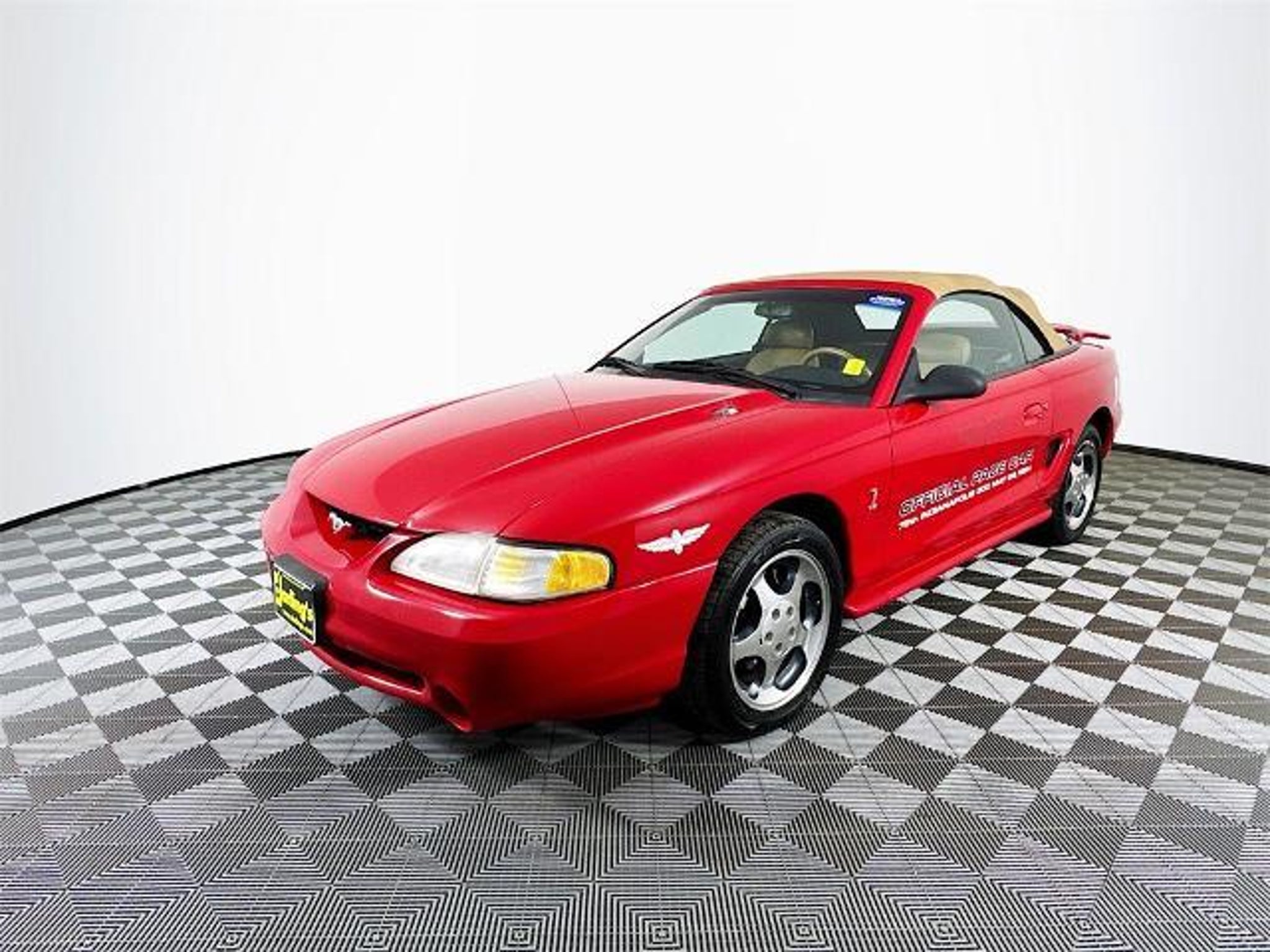This isn't just a Mustang, it's a milestone. A 1994 Ford Mustang SVT Cobra Convertible, born from the minds at Fords Special Vehicle Team, crafted to usher in a new generation of American performance. And this one? It's the rare Indianapolis 500 Pace Car Edition, a rolling tribute to speed, style, and racing history. Only 1,000 of these drop-top Cobras were produced to commemorate the 1994 Indy 500, and each came draped in Rio Red with a Saddle leather interior and matching convertible top. From the exclusive Indy 500 badging to the aggressive Cobra styling cues, this car doesn't whisper its pedigree, it shouts it at full throttle. Under the hood lies a high-output 5.0L V8, tuned by SVT to deliver 240 horsepower and 285 lb-ft of torque, numbers that made hearts race in the mid-90s and still stir excitement today. Rear-wheel drive and a 5-speed manual transmission complete the package, delivering a visceral, analog driving experience that reminds you what muscle cars were truly meant to be. Fire it up and the exhaust sings that unmistakable Cobra note, equal parts menace and melody. Drop the top, feel the wind, and let the world know you're not just driving a convertible, you're piloting a piece of motorsport history. Whether its cruising down the boulevard or pulling onto the show field, this 1994 SVT Cobra Indy 500 Pace Car Edition demands attention. It's rare. Its raw. And it's ready to write its next chapter, if youre bold enough to take the wheel.