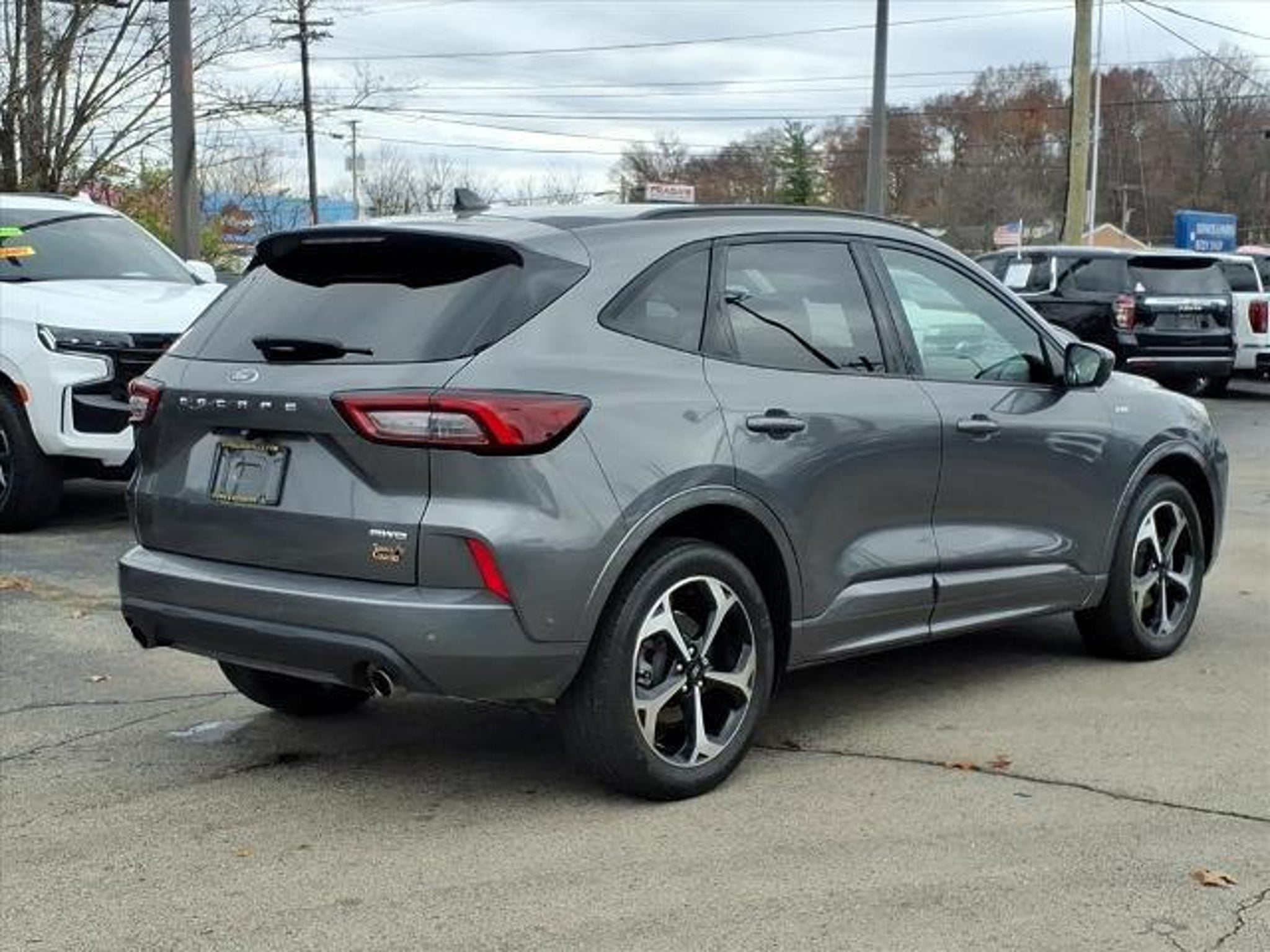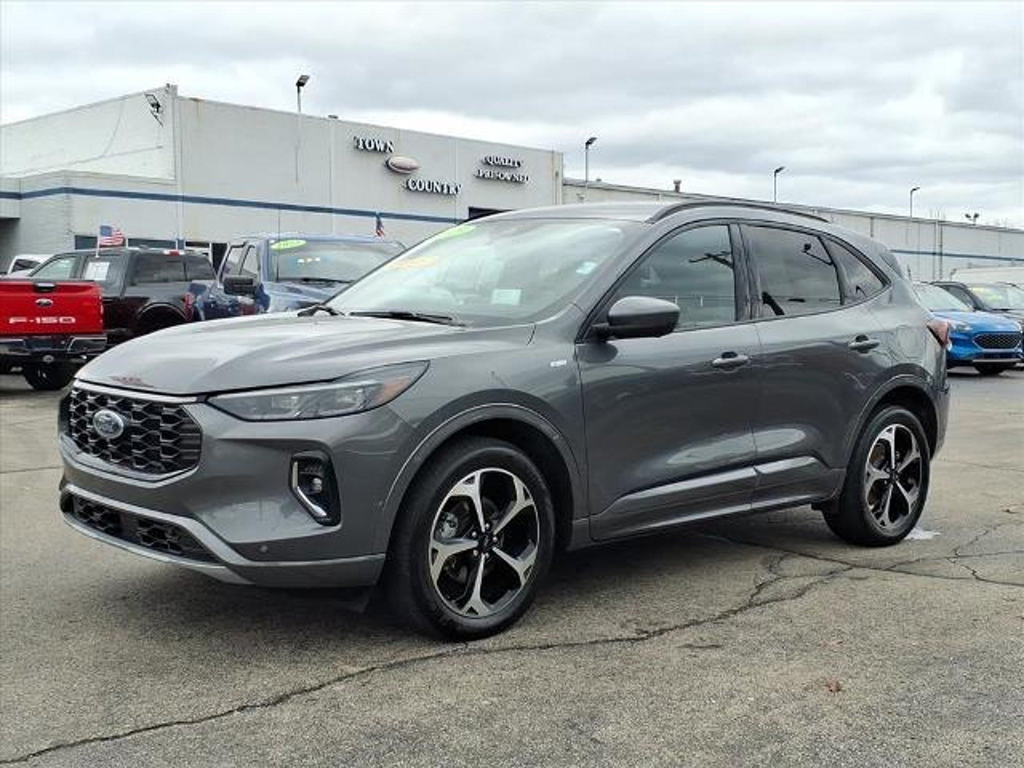 This 2023 Ford Escape ST-Line Elite is a vehicle that is sure to turn heads. With a low mileage of 26,158 miles and an all wheel drive system, this car is sure to provide you with the power you need. It has a gray exterior and an ebony interior, giving it a sleek and modern look. It also has a 2.0 liter 4 cylinder engine with turbocharged capabilities, giving you an impressive 23 mpg in the city and 31 mpg on the highway. The car also has a crash test rating of 5 out of 5 stars, so you can be sure that you and your passengers are safe while driving. Other features include touch screen display, Bluetooth audio connection, blind spot sensor, hill start assist, on demand four wheel drive, navigation system with voice recognition, and leather-trimmed seats. This car is sure to turn heads wherever you go! Contact Details: Town and Country Ford - Louisville, 6015 Preston Hwy, Louisville, KY, 40219, tbradley@tacford.com, (502) 964-8131.