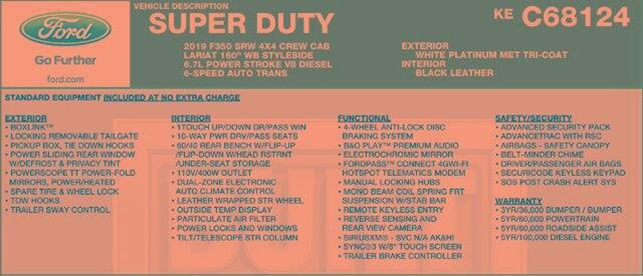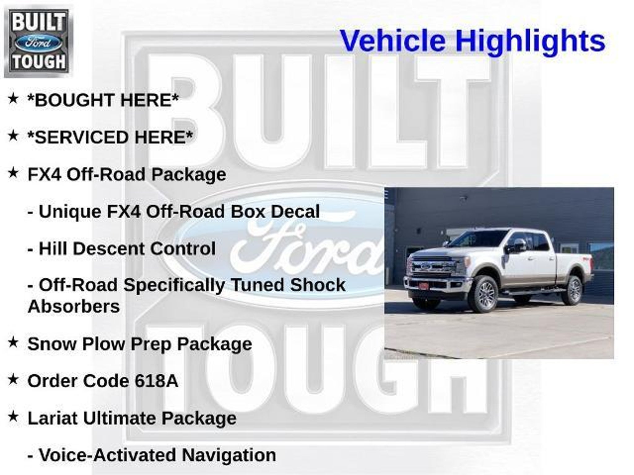 *BOUGHT HERE*, *SERVICED HERE*, 4WD, Ambient Lighting - Fixed Color, Automatic High Beam, Easy EntryÂ/Exit Memory Driver's Seat Feature, Electronic-Locking w/3.55 Axle Ratio, FX4 Off-Road Package, GVWR: 11,300 lb Payload Package, Hill Descent Control, Intelligent Access w/Push-Button Start, Lariat Ultimate Package, LED Box Lighting, Memory Power-Adjustable Pedals, Off-Road Specifically Tuned Shock Absorbers, Order Code 618A, Power Heated/Cooled Driver Seat w/Memory, Power Heated/Cooled Passenger Seat, Power Telescoping/Tilt Steering Wheel/Column, PowerScope Trailer Tow Mirrors w/Memory, Remote Start System, Remote Tailgate Release, Snow Plow Prep Package, Tailgate Step & Handle, Unique FX4 Off-Road Box Decal, Voice-Activated Navigation. Odometer is 33525 miles below market average! Whatever your automotive needs may be, Caribou Ford is here to serve you. Located at 210 West 2nd South in Soda Springs, Idaho, we're a quick drive away from the surrounding Afton WY, Idaho Falls, Pocatello and Montpelier ID areas. Come see what we can do for you today. 2019 Ford F-350SD Lariat White Platinum Metallic Tri-Coat