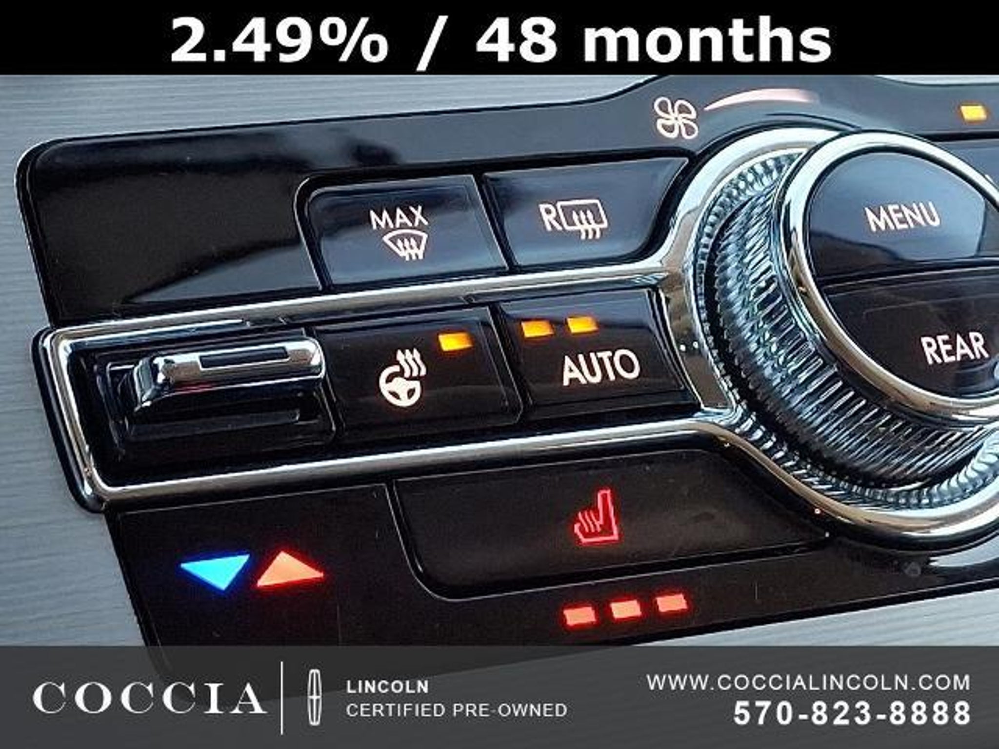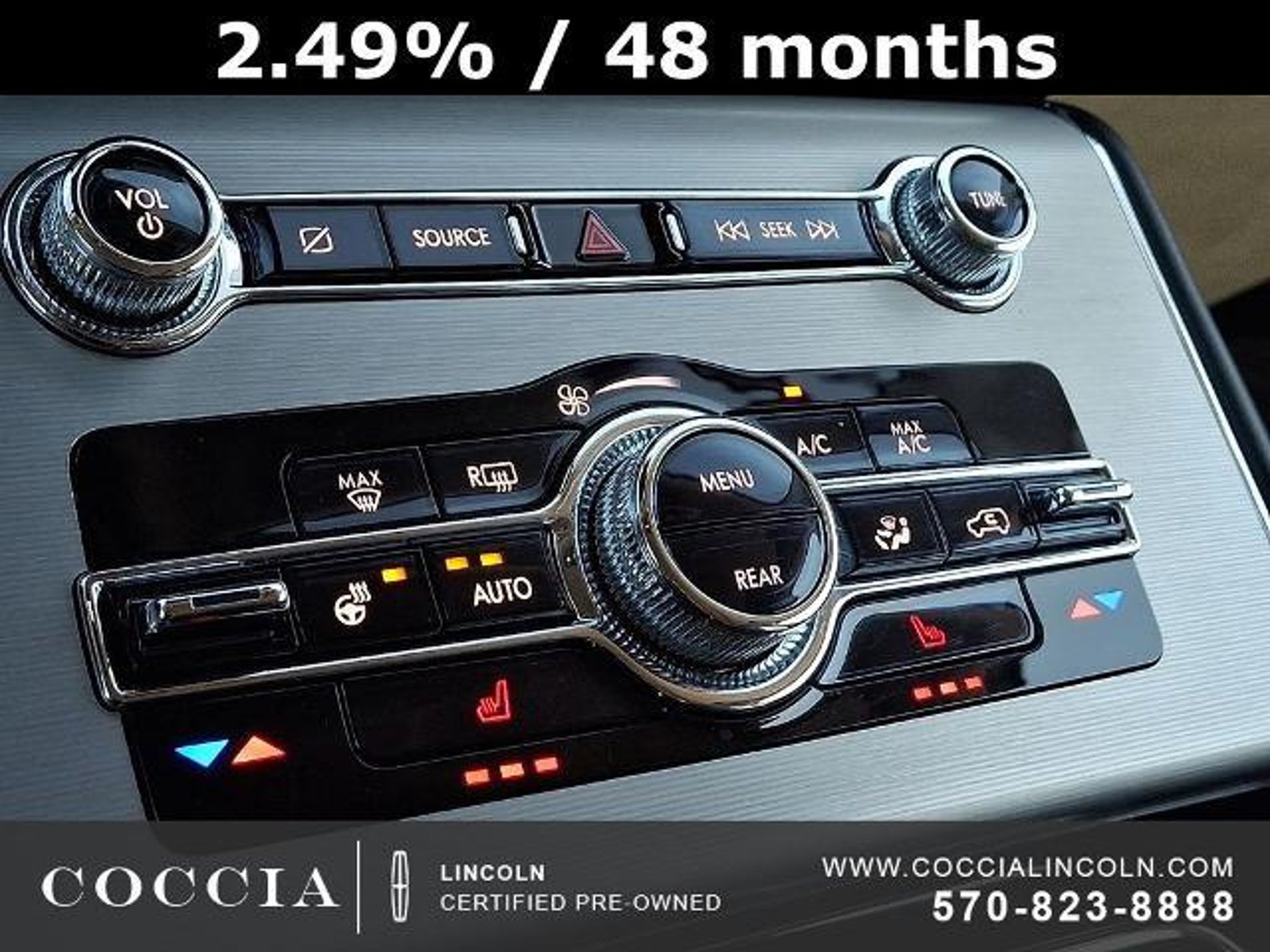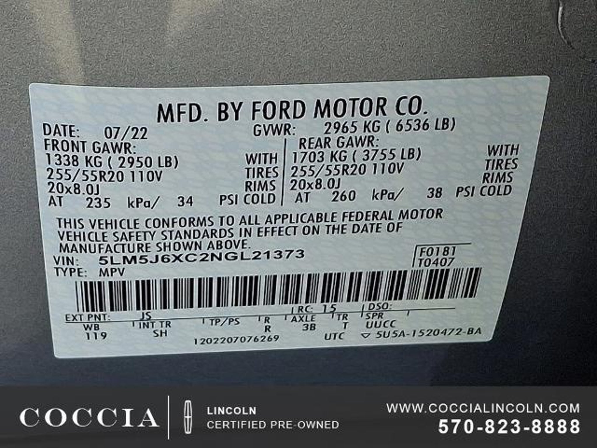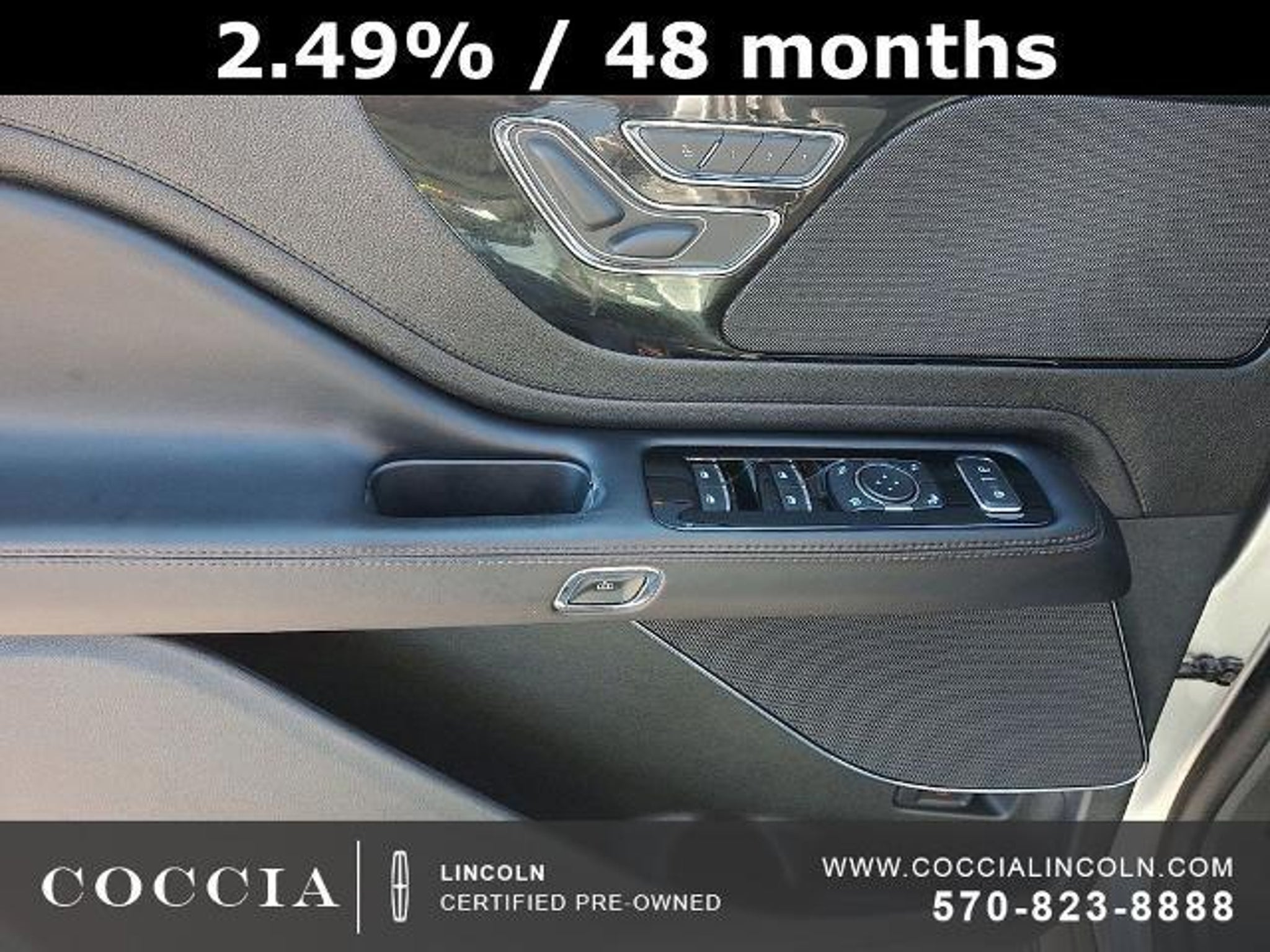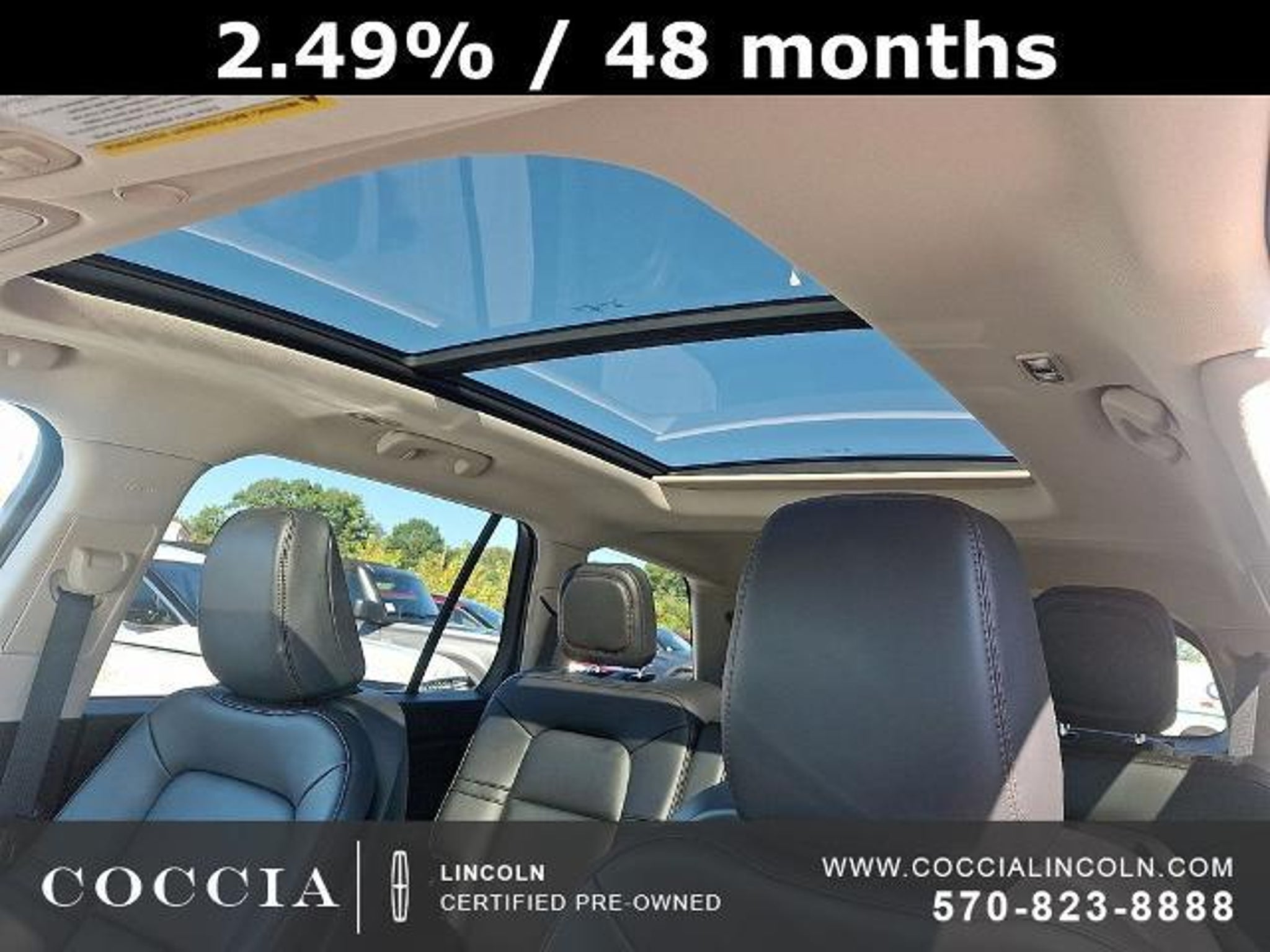 Lincoln Certified Pre-Owned Vehicles include a 6-year/100,000 mile* Powertrain Limited Warranty Coverage, 12-month/12,000- mile Comprehensive Limited Warranty Coverage, 200-Point Vehicle Inspection, Vehicle History Report, and 24/7 Roadside Assistance. COCCIA is Family Owned, Customer Driven. Certified. 4D Sport Utility AWD 3.0L V6 10-Speed Automatic 17/24 City/Highway MPG One Owner, Clean Vehicle History Report, Buy at Coccia and receive complimentary inspections for the life of your vehicle, Complimentary car wash with every service visit, Convenient Saturday service department hours available, Family owned and operated for over 35 years!, 10 Speakers, 2nd Row 40/Mini Console/40 Dual Captain's Chairs, 3.58 Axle Ratio, 3rd row seats: split-bench, Air Conditioning, Alloy wheels, AM/FM radio: SiriusXM, Audio memory, Auto High-beam Headlights, Auto-dimming door mirrors, Auto-dimming Rear-View mirror, Automatic temperature control, Brake assist, Bumpers: body-color, Compass, Delay-off headlights, Driver door bin, Driver vanity mirror, Electronic Stability Control, Elements Package, Equipment Group 100A, Four wheel independent suspension, Front Bucket Seats, Front Center Armrest, Front dual zone A/C, Front reading lights, Fully automatic headlights, Garage door transmitter, Heated 2nd Row Outboard Seats, Heated door mirrors, Heated front seats, Heated Steering Wheel, Heated VisioBlade Wipers, HVAC memory, Illuminated entry, Lincoln Soft Touch Heated Front Captain's Chairs, Memory seat, Outside temperature display, Overhead console, Panic alarm, Panoramic Vista Roof w/Power Shade, Passenger door bin, Passenger vanity mirror, Power door mirrors, Power driver seat, Power Liftgate, Power passenger seat, Power steering, Power windows, Premium Package, Radio data system, Radio: Lincoln Premium Audio System, Rain sensing wipers, Rear air conditioning, Rear reading lights, Rear window defroster, Rear window wiper, Remote keyless entry, Security system, SiriusXM Radio, Speed control, Speed-Sensitive Wipers, Split folding rear seat, Spoiler, Steering wheel mounted A/C controls, Steering wheel mounted audio controls, SYNC 3 Communication & Entertainment System, Tachometer, Telescoping steering wheel, Tilt steering wheel, Traction control, Trip computer, Turn signal indicator mirrors, Variably intermittent wipers, Voice-Activated Touchscreen Navigation System, Wheels: 19 Bright-Machined Aluminum, Wheels: 20 Bright-Machined Aluminum. COCCIA is Family Owned, Customer Driven.