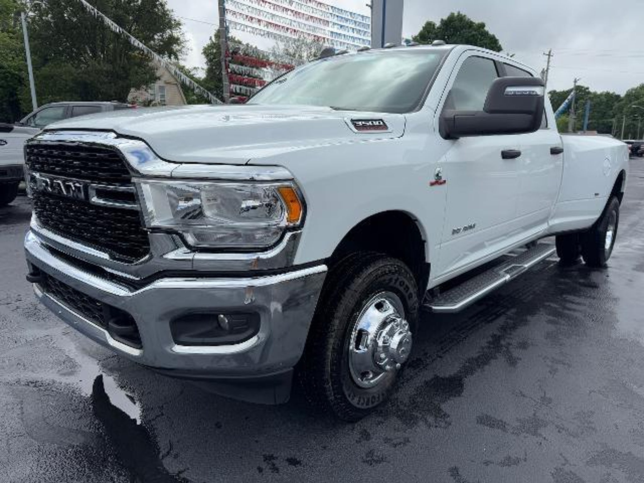Equipment This model offers Apple CarPlay for seamless connectivity. Our dealership has already run the CARFAX report and it is clean. A clean CARFAX is a great asset for resale value in the future. Protect it from unwanted accidents with a cutting edge backup camera system. Bluetooth technology is built into this Ram 3500, keeping your hands on the steering wheel and your focus on the road. Good News! This certified CARFAX 1-owner vehicle has only had one owner before you. This model offers Android Auto for seamless smartphone integration. With the keyless entry system on this 1 ton pickup you can pop the trunk without dropping your bags from the store. Greater towing safety becomes standard with the installed trailer brake. This Ram 3500 has four wheel drive capabilities. This Ram 3500 has a 6 Cyl, 6.7L high output engine. This 1 ton pickup embodies class and sophistication with its refined white exterior. Packages Quick Order Package 2HZ Big Horn. Dual Rear Wheels: Bright Wheel Skins Clearance Lamps LT235/80R17E BSW AS Tires 17 Steel Spare Wheel Box and Rear Fender Clearance Lamps Center Hub 17 X 6.0 Steel Chrome Clad Wheels 6000# Front Axle with Hub Extension 14. 000 lbs GVWR Rear Wheelhouse Liners. Level 1 Equipment Group: Leather Wrapped Steering Wheel Rear Dome with On/off Switch Lamp Front Fog Lamps Premium Cloth 40/20/40 Bench Seat Glove Box Lamp Auto Power-Folding Mirrors Footwell Courtesy Lamp Exterior Mirrors with Heating Element Mirror Running Lights Uconnect 5 with 8.4 Display Radio Foam Bottle Insert (door Trim Panel) Black Exterior Mirrors Big Horn Instrument Panel Badge Power-Adjustable Convex Aux Mirrors Forward and Reverse Utility Lights Locking Lower Glove Box Power Heated Fold Telescopic Mirrors Exterior Mirrors with Supplemental Signals Steering Wheel Mounted Audio Controls Exterior Mirrors Courtesy Lamps Dual Glove Boxes Center Hub Power Adjust Mirrors 2nd Row in Floor Storage Bins Power Telescoping Mirrors. Premium Cloth 40/20/40 Bench Seat. Uconnect 5 with 8.4 Display Radio. Chrome Flat Cab-Length Side Steps. MOPAR Spray in Bedliner. 5th Wheel/gooseneck Towing Prep Group. Front Fog Lamps. Rear Wheelhouse Liners. Clearance Lamps. Power 2-Way Driver Lumbar Adjust. **Equipment listed is based on original vehicle build and subject to change. Please confirm the accuracy of the included equipment by calling the dealer prior to purchase.**