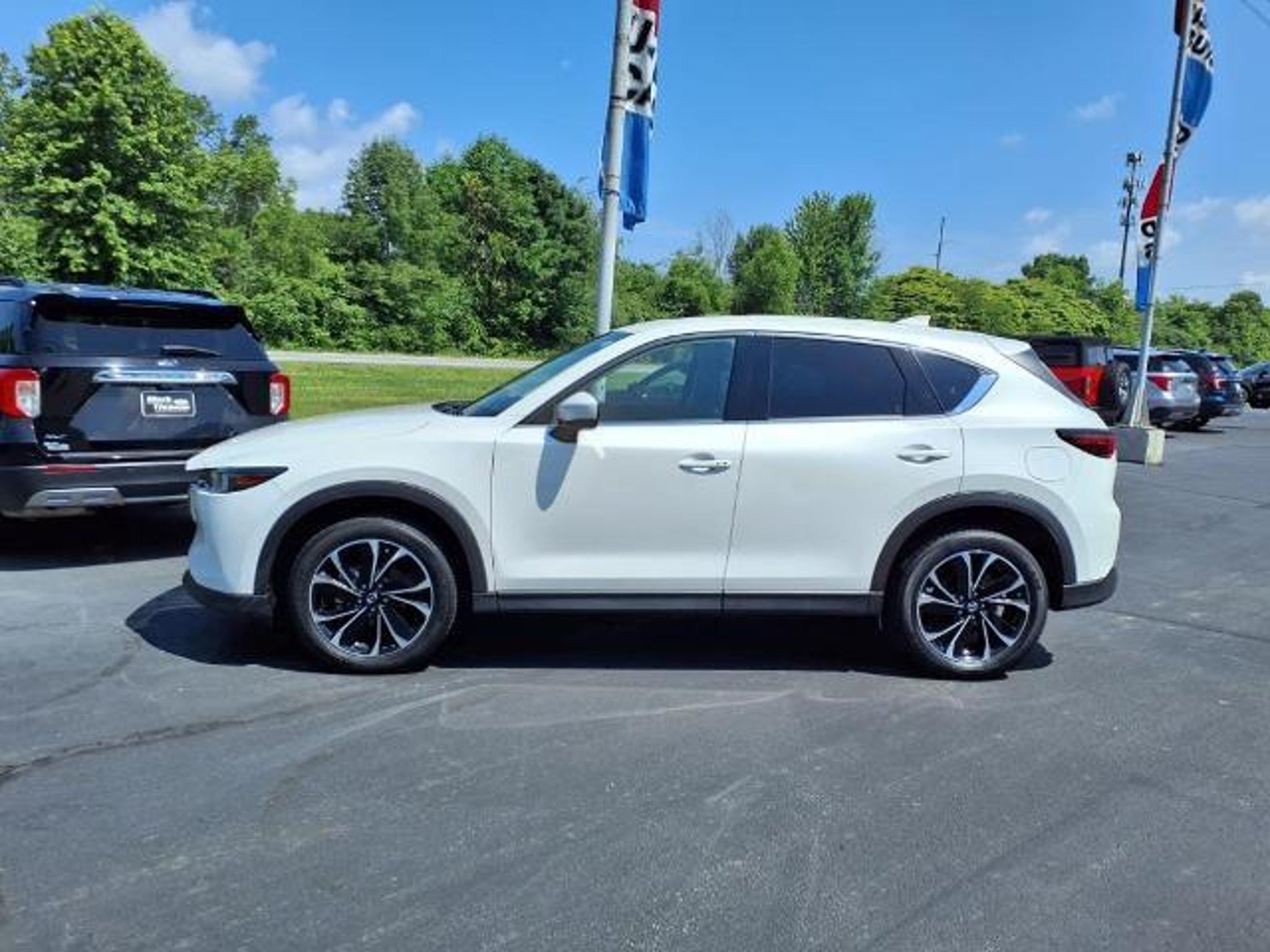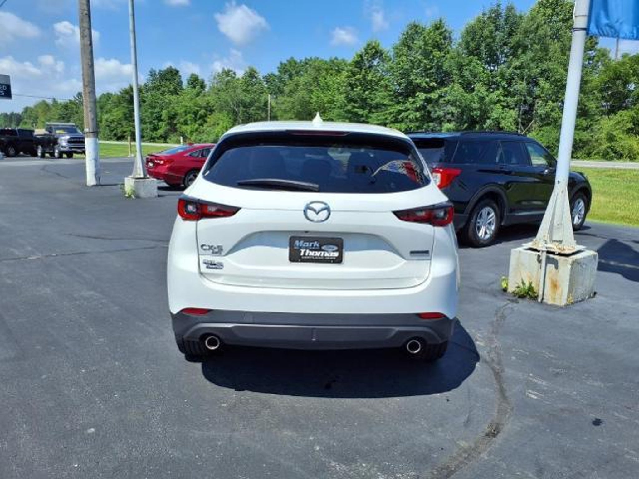 Rhodium White Metallic 2023 Mazda CX-5 2.5 S Premium Plus Package AWD 6-Speed Automatic SKYACTIVÂ 2.5L 4-Cylinder DOHC 16V Mark Thomas Ford is proud to offer this outstanding-looking 2023 Mazda CX-5 in Rhodium White Metallic. This 2023 Mazda CX-5 has passed our comprehensive inspection and comes with the following features; 10 Speakers, 4-Wheel Disc Brakes, 4.624 Axle Ratio, ABS brakes, Air Conditioning, All-Weather Floor Mats, Alloy wheels, AM/FM radio: SiriusXM, AppLink/Apple CarPlay and Android Auto, Auto High-beam Headlights, Auto-dimming Rear-View mirror, Automatic temperature control, Brake assist, Bumpers: body-color, Cargo Net, Delay-off headlights, Driver door bin, Driver vanity mirror, Dual front impact airbags, Dual front side impact airbags, E911 Automatic Emergency Notification, Electronic Stability Control, Emergency communication system: MAZDA CONNECT, Exterior Parking Camera Rear, Four wheel independent suspension, Front anti-roll bar, Front Bucket Seats, Front Center Armrest w/Storage, Front dual zone A/C, Front reading lights, Fully automatic headlights, Garage door transmitter: HomeLink, Heads-Up Display, Heated door mirrors, Heated front seats, Heated rear seats, Heated steering wheel, Heated/Ventilated Front Bucket Seats, Illuminated entry, Infotainment System Voice Command, Leather Seat Trim, Leather Shift Knob, Low tire pressure warning, Memory seat, Multifunction Commander Control, Occupant sensing airbag, Outside temperature display, Overhead airbag, Overhead console, Pandora, Panic alarm, Passenger door bin, Passenger vanity mirror, Power door mirrors, Power driver seat, Power Liftgate, Power moonroof, Power passenger seat, Power steering, Power windows, Radio Broadcast Data System Program Information, Radio data system, Radio: AM/FM/HD Audio System, Rain sensing wipers, Rear anti-roll bar, Rear reading lights, Rear seat center armrest, Rear window defroster, Rear window wiper, Remote keyless entry, Rhodium White Metallic Paint, SMS Text Msg Audio Delivery & Reply, Speed control, Speed-sensing steering, Split folding rear seat, Spoiler, Steering wheel mounted audio controls, Tachometer, Telescoping steering wheel, Tilt steering wheel, Traction control, Trip computer, Turn signal indicator mirrors, Variably intermittent wipers, Ventilated front seats, and Wheels: 19 x 7J Aluminum Alloy. Odometer is 1385 miles below market average! 24/30 City/Highway MPG
