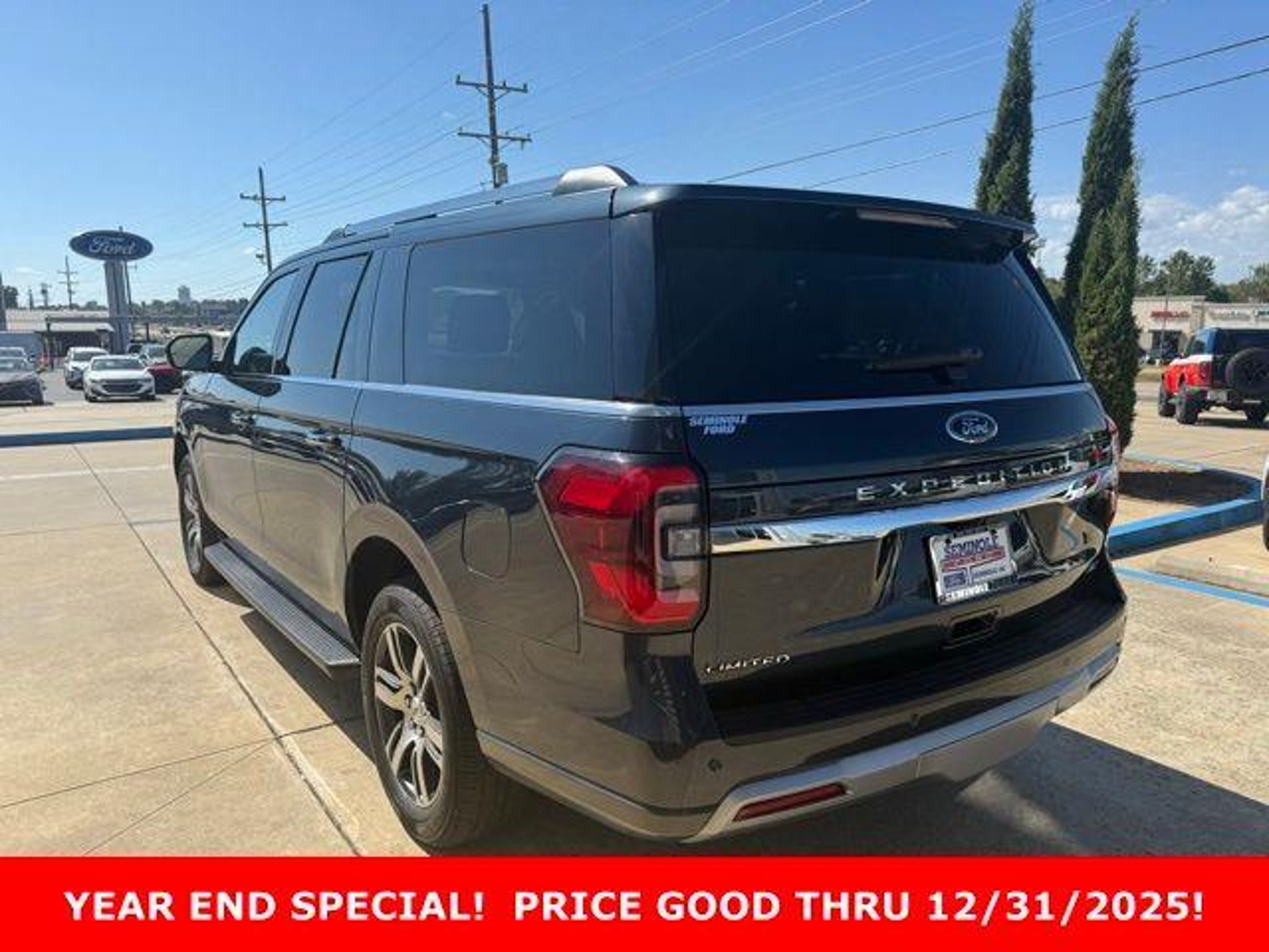 2024 Ford Expedition Max Limited ONE OWNER, CLEAN CARFAX, 4WD, LEATHER SEATS, HEATED SEATS, BLUETOOTH, REAR VIEW CAMERA, REMOTE START, KEYLESS ENTRY, BLIND SPOT MONITOR, SATELLITE RADIO, KEYLESS IGNITION, Backup Camera, SECOND ROW BENCH SEAT, HEATED STEERING WHEEL. EcoBoost 3.5L V6 GTDi DOHC 24V Twin Turbocharged 4WD 16/22 City/Highway MPG Equipment Group 301A Mid Package, 12 Speakers, 2nd Row Power-Folding 40/20/40 Leather Bench Seat, 3.31 Axle Ratio, 3rd row seats: split-bench, 4-Wheel Disc Brakes, ABS brakes, Adjustable pedals, Air Conditioning, Alloy wheels, AM/FM radio: SiriusXM with 360L, Auto High-beam Headlights, Auto-dimming door mirrors, Auto-dimming Rear-View mirror, Automatic temperature control, Brake assist, Bumpers: body-color, Compass, Delay-off headlights, Driver door bin, Driver vanity mirror, Dual front impact airbags, Dual front side impact airbags, Electronic Stability Control, Emergency communication system: SYNC 4 911 Assist, Exterior Parking Camera Rear, Four wheel independent suspension, Front anti-roll bar, Front Bucket Seats, Front Center Armrest, Front dual zone A/C, Front fog lights, Front License Plate Bracket, Front reading lights, Fully automatic headlights, Garage door transmitter, Heated & Ventilated Leather Front Captain's Chairs, Heated door mirrors, Heated front seats, Heated rear seats, Heated steering wheel, Illuminated entry, Leather steering wheel, Low tire pressure warning, Memory seat, Navigation system: Connected Navigation, Occupant sensing airbag, Outside temperature display, Overhead airbag, Overhead console, Panic alarm, Passenger door bin, Passenger vanity mirror, Pedal memory, Power door mirrors, Power driver seat, Power Liftgate, Power moonroof, Power passenger seat, Power steering, Power windows, Radio data system, Radio: B&O Sound System by Bang & Olufsen, Rain sensing wipers, Rear air conditioning, Rear anti-roll bar, Rear reading lights, Rear window defroster, Rear window wiper, Reclining 3rd row seat, Remote keyless entry, Security system, SiriusXM w/360L, Speed control, Speed-sensing steering, Speed-Sensitive Wipers, Split folding rear seat, Spoiler, Steering wheel memory, Steering wheel mounted audio controls, SYNC 4 w/Enhanced Voice Recognition, Tachometer, Telescoping steering wheel, Tilt steering wheel, Traction control, Trip computer, Turn signal indicator mirrors, Variably intermittent wipers, Ventilated front seats, Voltmeter, and Wheels: 20 Bright Machined Aluminum. IF WE DON'T SERVE YOU, WE DON'T DESERVE YOU! Seminole Ford proudly serving