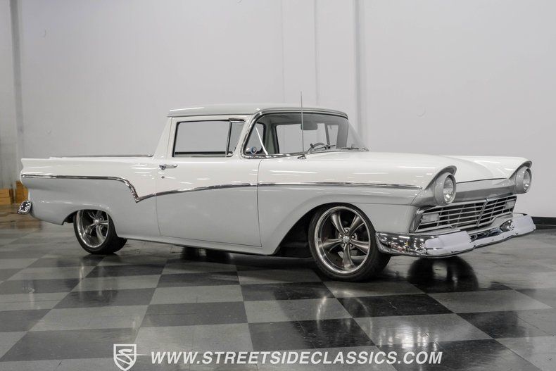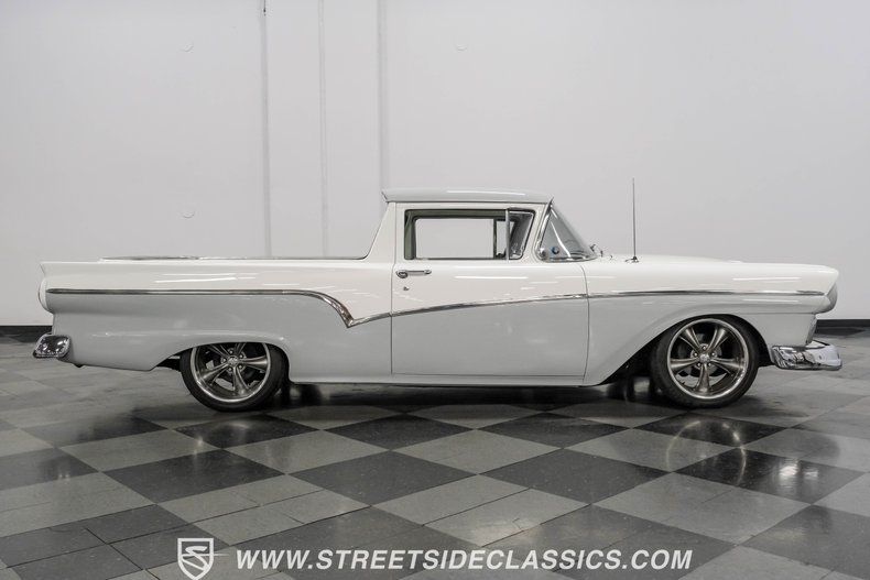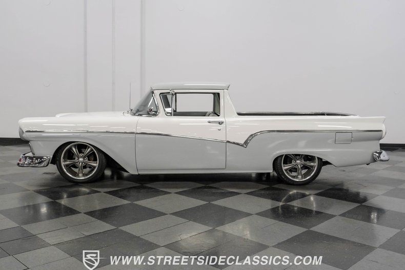 When this 1957 Ford Ranchero first rolled off the assembly line to herald the arrival of a truly revolutionary vehicle pairing the utility of a pickup truck with the easy drivability of a passenger car, no one could have imagined that it would emerge nearly 70 years later looking this good. Dressed in a very effective pairing of white and gray, this is a classic that demands attention. The tasteful paint job is in fine shape and is complemented by a collection of chrome that's in uniformly clean condition. This vintage Ford's aggressive stance strikes a nice balance, resulting in it being low enough to confirm that some aftermarket workmanship was involved, but without going so overboard as to leave it unable to contend with everyday driving conditions.