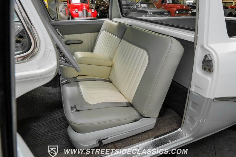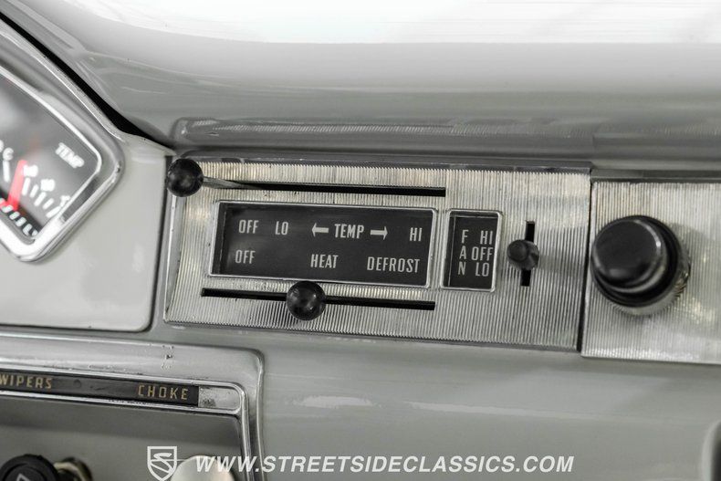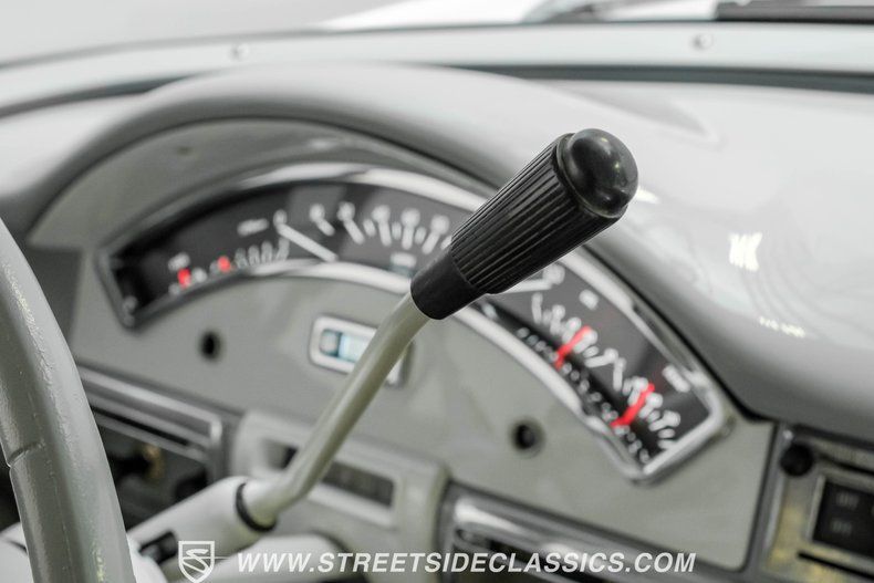 The matching interior makes for an inspiring driving environment, featuring clean painted surfaces paired with vinyl upholstery showing only the slightest of wear. The broad bench seat is especially comfortable and offers an added console offering a pair of cupholders and some welcome interior storage space. You'll find a collection of Dakota Digital gauges in the instrument cluster to help you monitor driving functions, and the aftermarket under dash air conditioning unit is running in top form to keep you and your passengers comfortable, year-round. There's also a retro look AM/FM stereo with an auxiliary port now on board in the dash, and while it's currently disconnected, it's otherwise ready for duty.