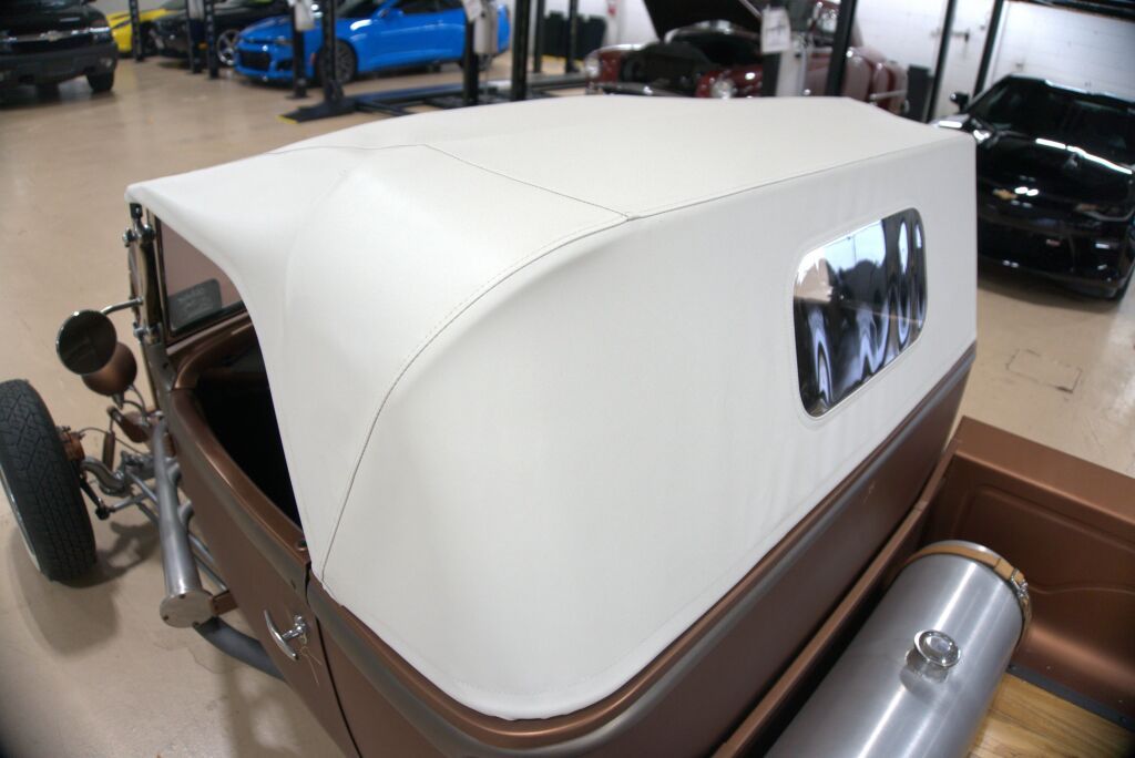 Check out this 1931 Ford Pickup! Finished in a matte bronze finish, the previous owner custom made the removable white top frame and had a company called Riggs Brothers put in the vinyl top. The owner before that put together the vehicle and it comes with plenty of receipts of the work that was done. Engine is a 350 paired to a automatic transmission. All lights and gauges work correctly and the vehicle has working turn signals and a horn. The gas tank is located in the bed of the vehicle. This vehicle comes with a extra set of headers with heat shields.