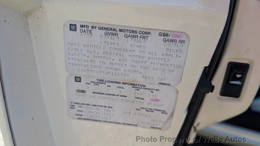 1988 Chevrolet Corvette Coupe 35th Anniversary Edition For Sale Limited Edition 35th Anniversary ~ Number 1,381 of Only 2,050 Made Loaded, Triple White Coupe In Exceptional Condition Air Conditioning L98 5.7L V8 Engine Hyper Tech Stage II Performance Chip Four-Speed Automatic Transmission Custom Intake ~ Original Included K and N Air Filter Power Steering Power Brakes New Exhaust New Brakes New Tires 17 Aluminum Wheels Limited-Slip Differential White Paint With White Leather Upholstery Targa Top ~ Removable Roof Panel Power Door Locks Power Windows Power-Adjustable Sport Bucket Seats Brand New Steering Wheel ~ Original Included Amazing Digital Dash ~ Reminiscent of Knight Rider Redone Side Bolsters Look Great Bose-Delco AM/FM/Cassette Stereo Beautiful Dash Top and Rear View Mirror Automatic Climate Control Cruise Control New Center Console Top Piece Owners Manuals, Window Sticker and Some Receipts Included Recently Serviced and Gone Through by Corvettes Unlimited Runs Perfectly For Sale By Owner Located In Wading River, NY 11792 Take A L@@K At The Video On YouTube: https://youtu.be/nxWLVNf5uIQ Follow This Link To 200 High Resolution Photos: https://photos.app.goo.gl/X7tmqnc39REo Koy79 WeBe Autos Specializes in Marketing and Advertising Muscle, Classic, Vintage and Specialty Cars. We offer Professional Photography, HD Movies, and Staging that Sells Cars. Let us showcase and sell your specialty car. Please visit our website for more details. Keep in Touch, Michael Runnalls Specialty Car Marketing & Media WeBe Autos Ltd. Long Island, NY 11780 Michael@WeBeAutos.com www.WeBeAutos.com (O)631-339-0399 (C)516-729-2003 Skype: webeautos (F)631-389-2605 - - Leather Interior Surface - Contact Michael Runnalls at 631-339-0399 or Michael@WeBeAutos.com for more information. -