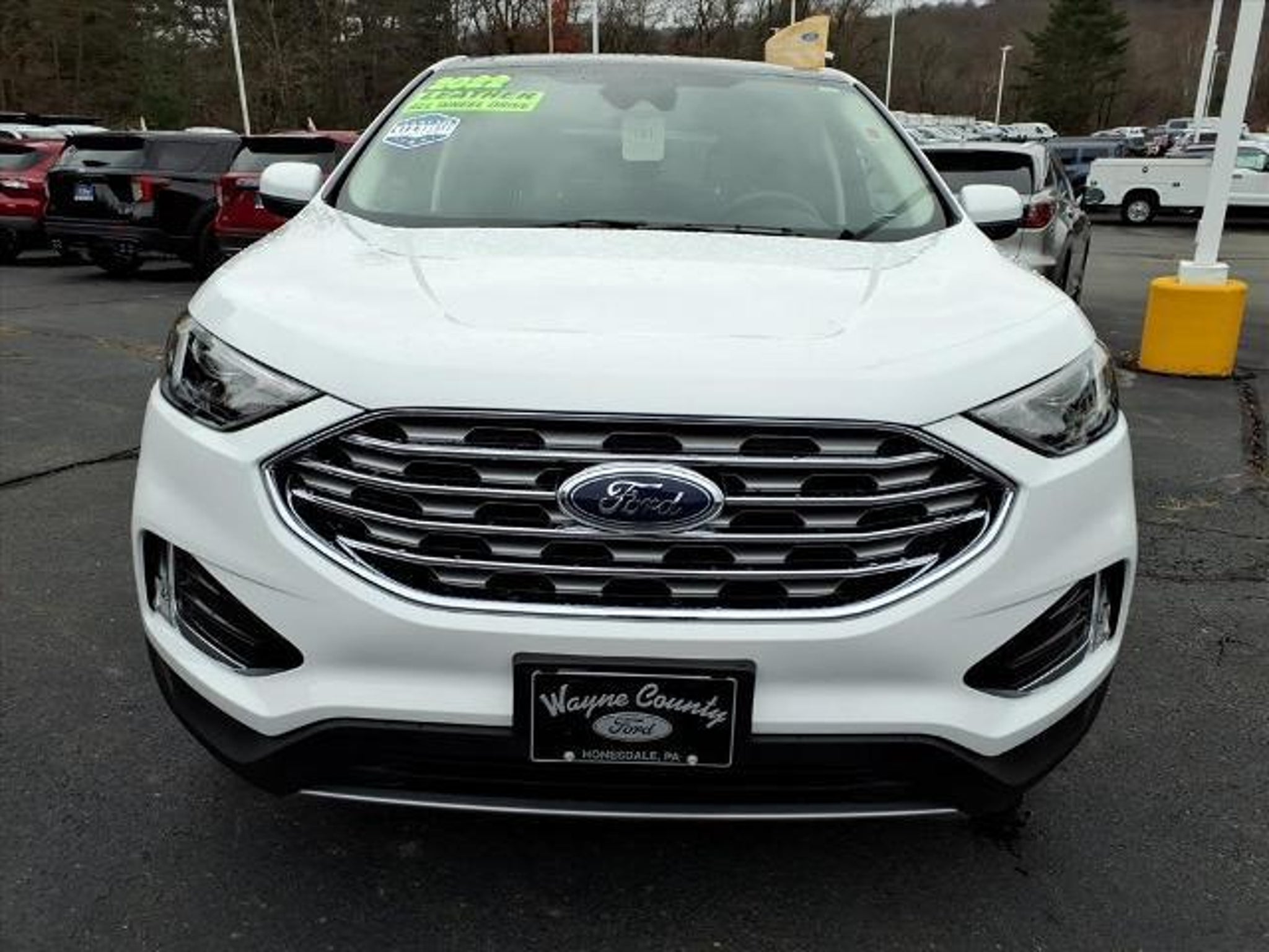 WAYNE COUNTY FORD WE MAKE THE DIFFERENCE. ONE OWNER, FORD CERTIFIED, CLEAN CARFAX, SERVICED AND READY TO DRIVE HOME, NEW TO THE LOT THIS ONE WONT LAST, RARE FIND, 4WD/AWD, REMAINDER OF FACTORY WARRANTY, 28 HWY MPG, Edge SEL, 4D Sport Utility, EcoBoost 2.0L I4 GTDi DOHC Turbocharged VCT, 8-Speed Automatic, AWD, Oxford White, Ebony w/ActiveX Seating Material Heated Bucket Seats, 110V/150W AC Power Outlet, Class II Trailer Tow Package, Convenience Package, Equipment Group 201A, Fog Lamps w/Chrome Bezel, Panoramic Vista Roof, Perimeter Alarm, Power Liftgate, Remote Start System, SecuriCode Keyless Entry Keypad, Universal Garage Door Opener (UGDO), Wireless Charging Pad. Oxford White 2022 Ford Edge SEL AWD 8-Speed Automatic EcoBoost 2.0L I4 GTDi DOHC Turbocharged VCT Recent Arrival! 21/28 City/Highway MPG YOU CAN BUY FROM ANYPLACE WHY NOT BUY FROM THE PLACE THAT CARES ABOUT YOU.