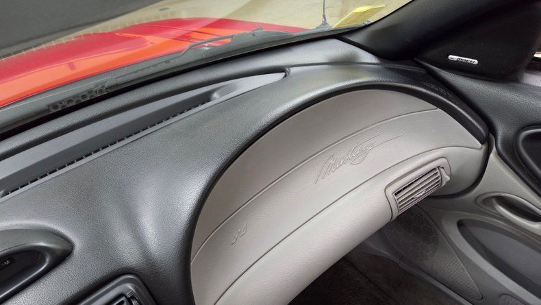 1996 Ford Mustang GT coupe with two owners and clean Carfax 4.6L SOHC V8 paired with a five-speed manual transmission Red exterior paint, black and gray interior with power driver's seat, and original wheels. Cold-blowing air conditioning, recent clutch maintenance, and Pioneer CD changer