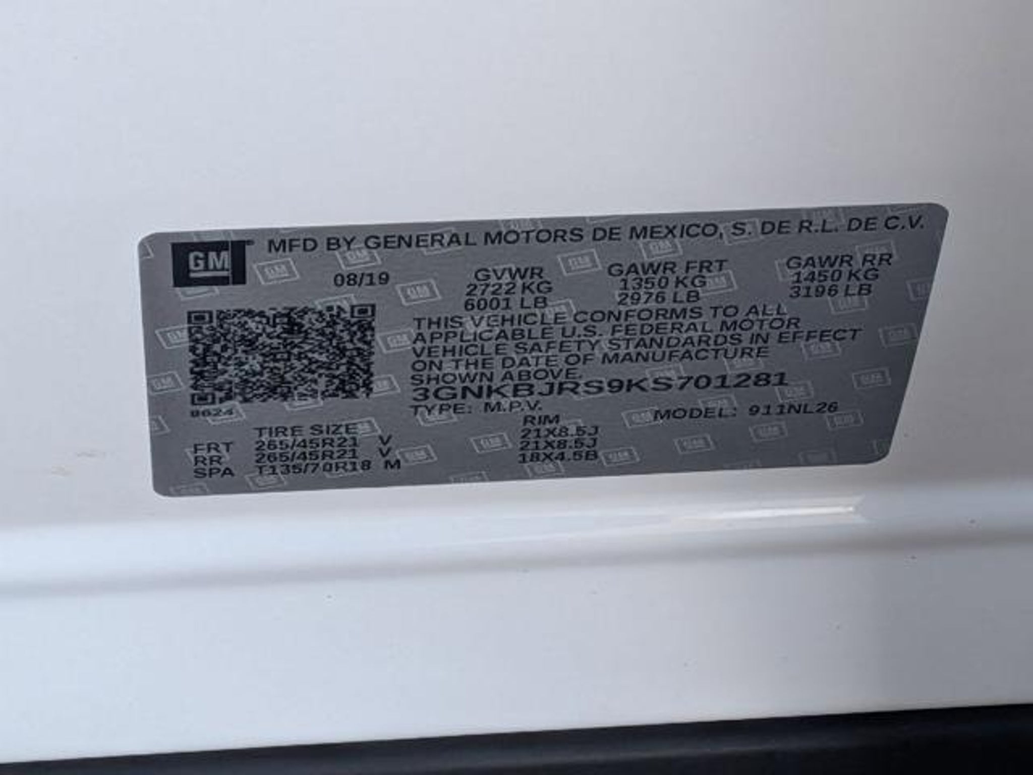 3GNKBJRS9KS701281 |