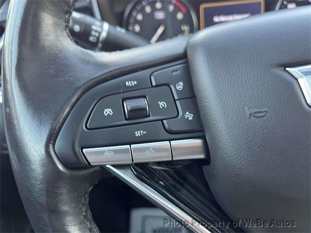 Air Conditioning, Climate Control, Cruise Control, Tinted Windows, Power Steering, Power Windows, Power Mirrors, Leather Steering Wheel, Power Passenger Seat, Memory Seat Position, Heated Seat, Roof Rack, Rear Air Conditioning, Tachometer, Digital Info Center, Tilt Steering Wheel, Telescoping Steering Wheel, Steering Wheel Radio Controls, Sunroof, Moonroof, Driver Airbag, Passenger Airbag, Side Airbags, Keyless Entry, Security System, ABS Brakes, Traction Control, Dynamic Stability, Rear Defogger, Intermittent Wipers, AM/FM, Leather Interior Surface, Premium Luxury Package 1SD, 3.49 Axle Ratio, Leather Seating Surfaces w/Mini-Perforated Inserts, Ride & Handling Suspension, Radio: Cadillac User Experience w/Embedded Nav, Technology Package, Front License Plate Bracket, 8-Way Power Driver Seat Adjuster, 2-Way Power Driver Lumbar Control Seat Adjuster, 2-Way Power Passenger Lumbar Control Seat Adjuster, Rear Camera Mirror Washer, Inside Rear-View Auto-Dimming Mirror, Rear Camera Mirror, Automatic Stop/Start w/Disable, Ventilated Driver & Front Passenger Seats, Teen Driver, SiriusXM w/360L, Front & Rear Park Assist, Dual Driver Info Center Display Gauge Cluster, 8 Color Driver Information Center Display, Automatic Emergency Braking, Automatic Parking Assist w/Braking, Rear Pedestrian Alert, HD Surround Vision, Head-Up Display, Surround Vision Recorder, 4-Wheel Disc Brakes, Emergency communication system: OnStar and Cadillac connected services capable, Auto High-beam Headlights, Compass, 14 Speakers, Auto-dimming Rear-View mirror, Front beverage holders, Ventilated front seats, Turn signal indicator mirrors, Telescoping steering wheel, Steering wheel memory, Split folding rear seat, Rear window wiper, Rear seat center armrest, Rear reading lights, Rear anti-roll bar, Rain sensing wipers, Radio data system, Power driver seat, Power door mirrors, Passenger vanity mirror, Passenger door bin, Overhead console, Overhead airbag, Outside temperature display, Occupant sensing airbag, Low tire pressure warning, Knee airbag, Illuminated entry, Heated steering wheel, Heated rear seats, Heated front seats, Heated door mirrors, Fully automatic headlights, Front reading lights, Front anti-roll bar, Four wheel independent suspension, Dual front side impact airbags, Dual front impact airbags, Driver vanity mirror, Driver door bin, Delay-off headlights, Bumpers: body-color, Brake assist, Automatic temperature control, Auto-dimming door mirrors, Audio memory, 3rd row seats: split-bench, Voltmeter, Spoiler, Power Liftgate, Navigation System, Front Center Armrest, Front Bucket Seats 3rd Row Seating, Carpeted Floor Mats, Child Proof Door Locks, Daytime Running Lights, Front Heated Seats, Head-Protection System, Heated Mirrors, Heated Steering Wheel, Navi