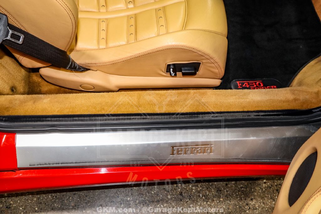 - California Car - 4.3L/483HP V8 Rear Engine - 6 Speed F1 Gearbox - Rosso Corsa over Tan Leather - Black Power Convertible Soft Top - Daytona Bucket Seats - Upgraded Stereo - 57k Miles The 2005 Ferrari F430 Spider represents the pinnacle of open-air Italian performance, blending cutting-edge engineering with timeless design. Finished in the signature Rosso Corsa exterior, this California car exudes the unmistakable character and passion synonymous with the Ferrari marque. Its sleek bodywork, sculpted for both beauty and aerodynamic precision, is complemented by a black power convertible soft top that folds neatly away to reveal an elegant and inviting tan leather cabin.